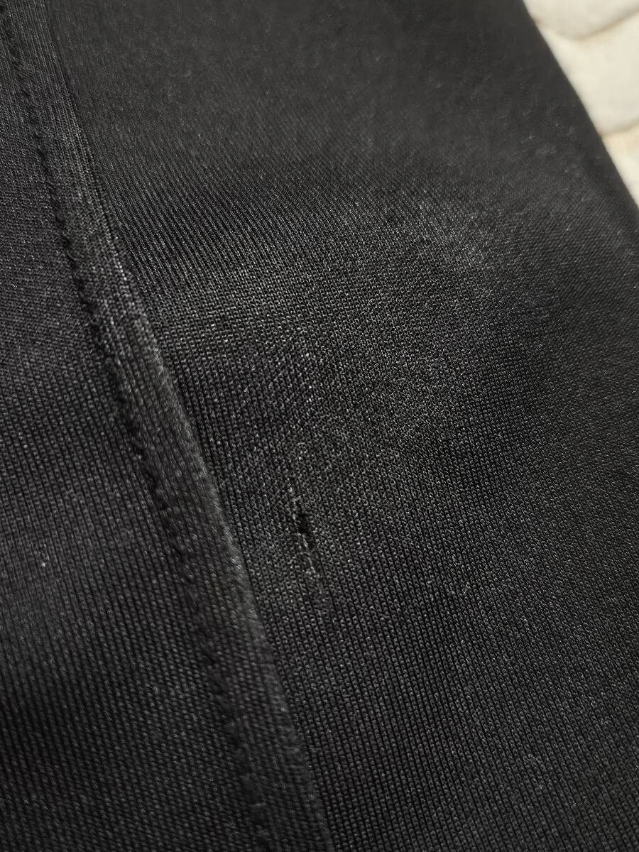 左膝あたり、引っかけた跡がありますが、穴はあいてません。(写真参照)