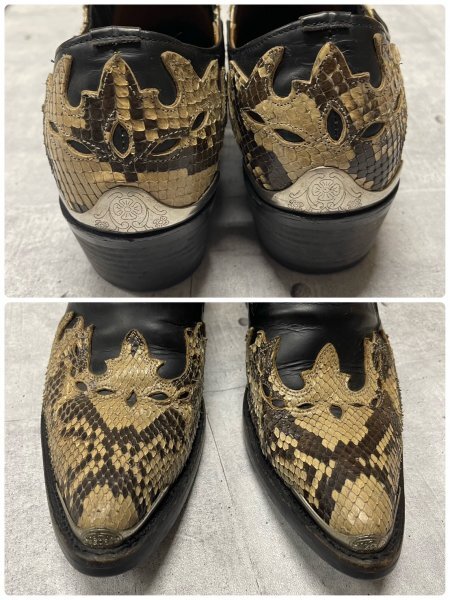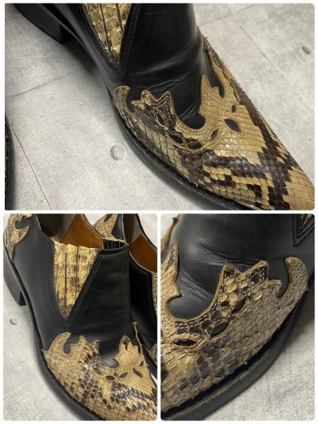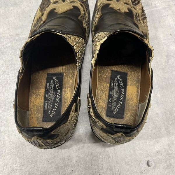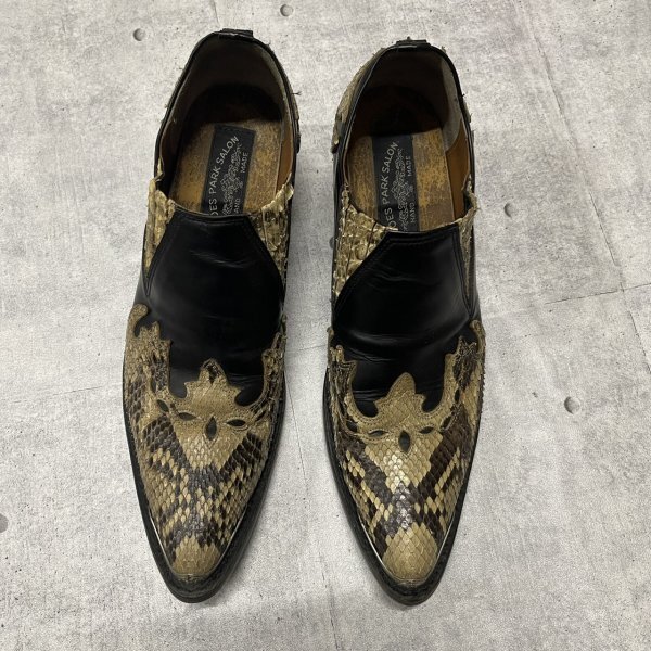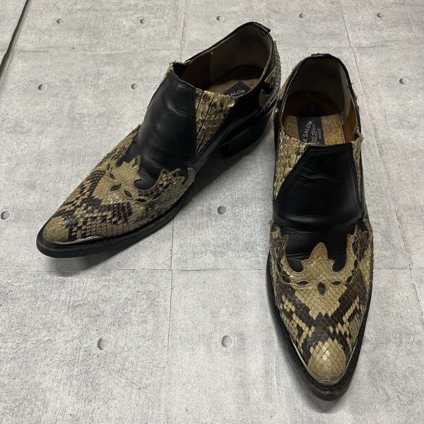 SHOES PARK SALON ウエスタンショートブーツ シューズパークサロン  パイソン柄 蛇革 レザー スニーカー ポインテッドトゥ 石瀬7488