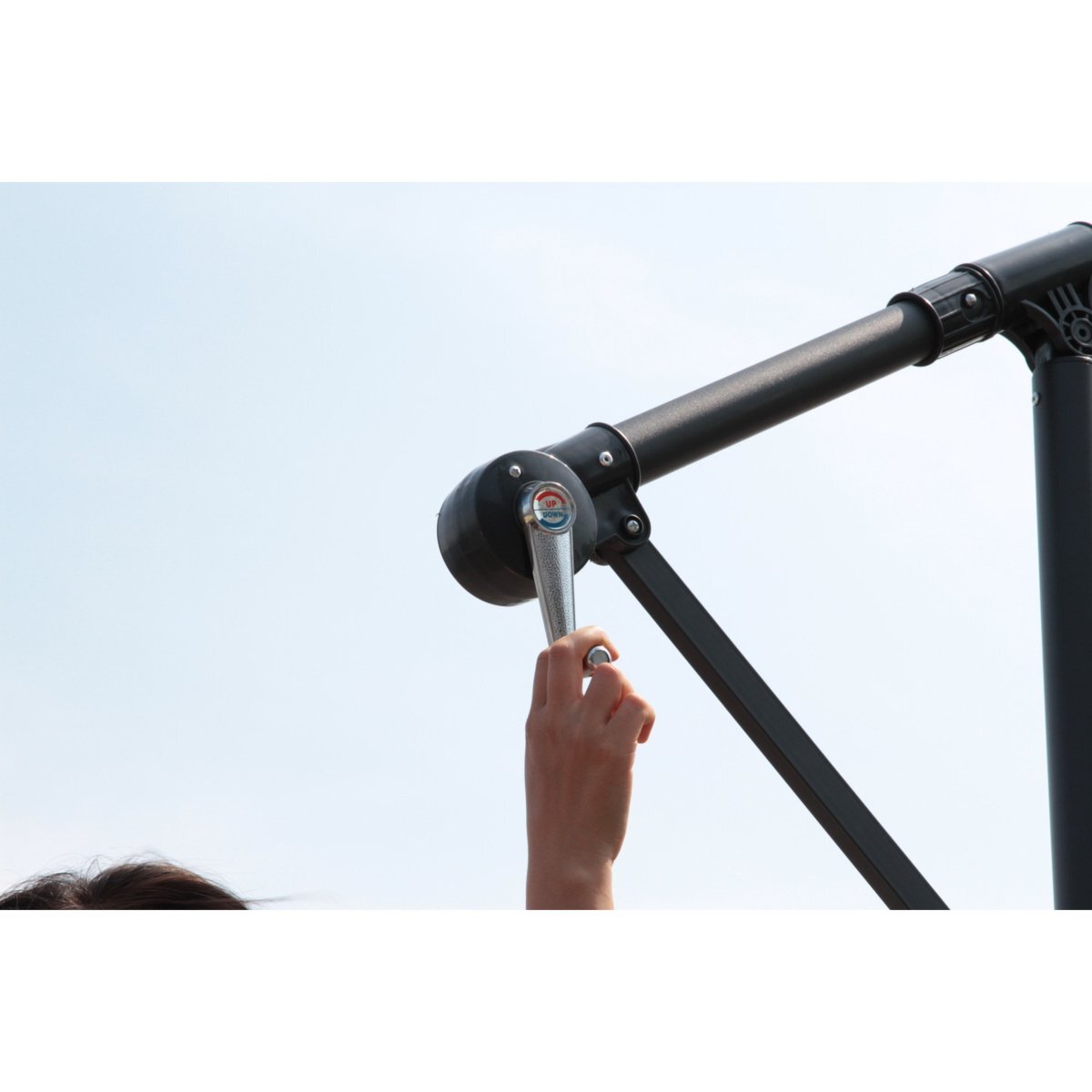 クランク式でラクラク開閉します。(強風時は必ず畳んでくたさい)