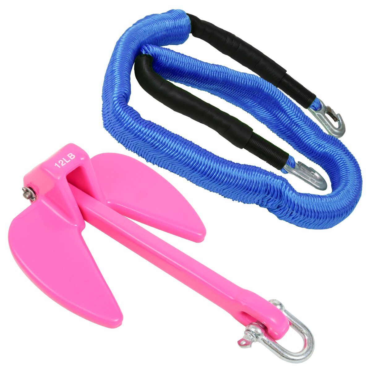【送料無料】『伸縮ロープ/アンカーセット』ジェットスキー 爪型 アンカー 12LBS 5.5kg ピンク 6M フロート のびのび アンカー ロープ 青