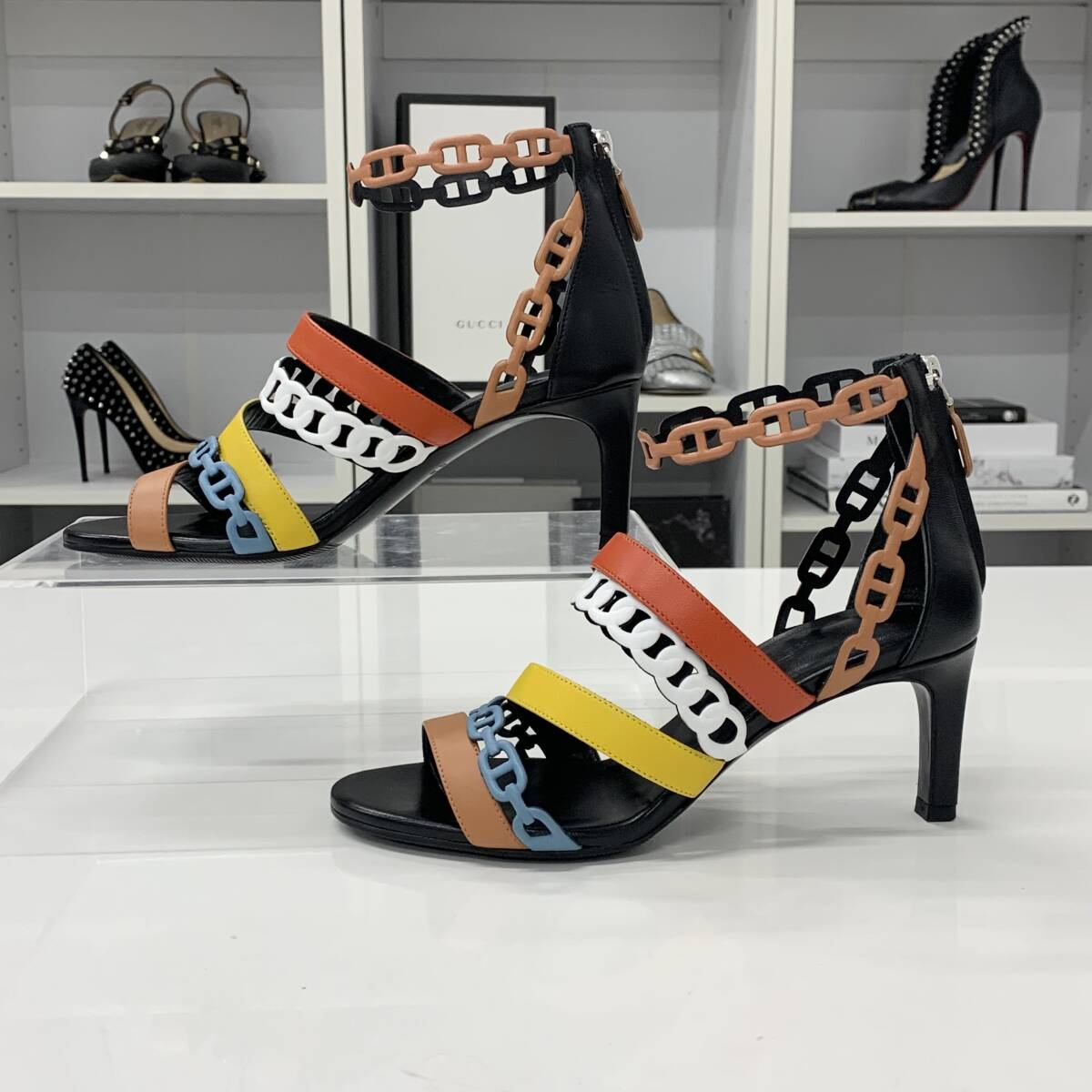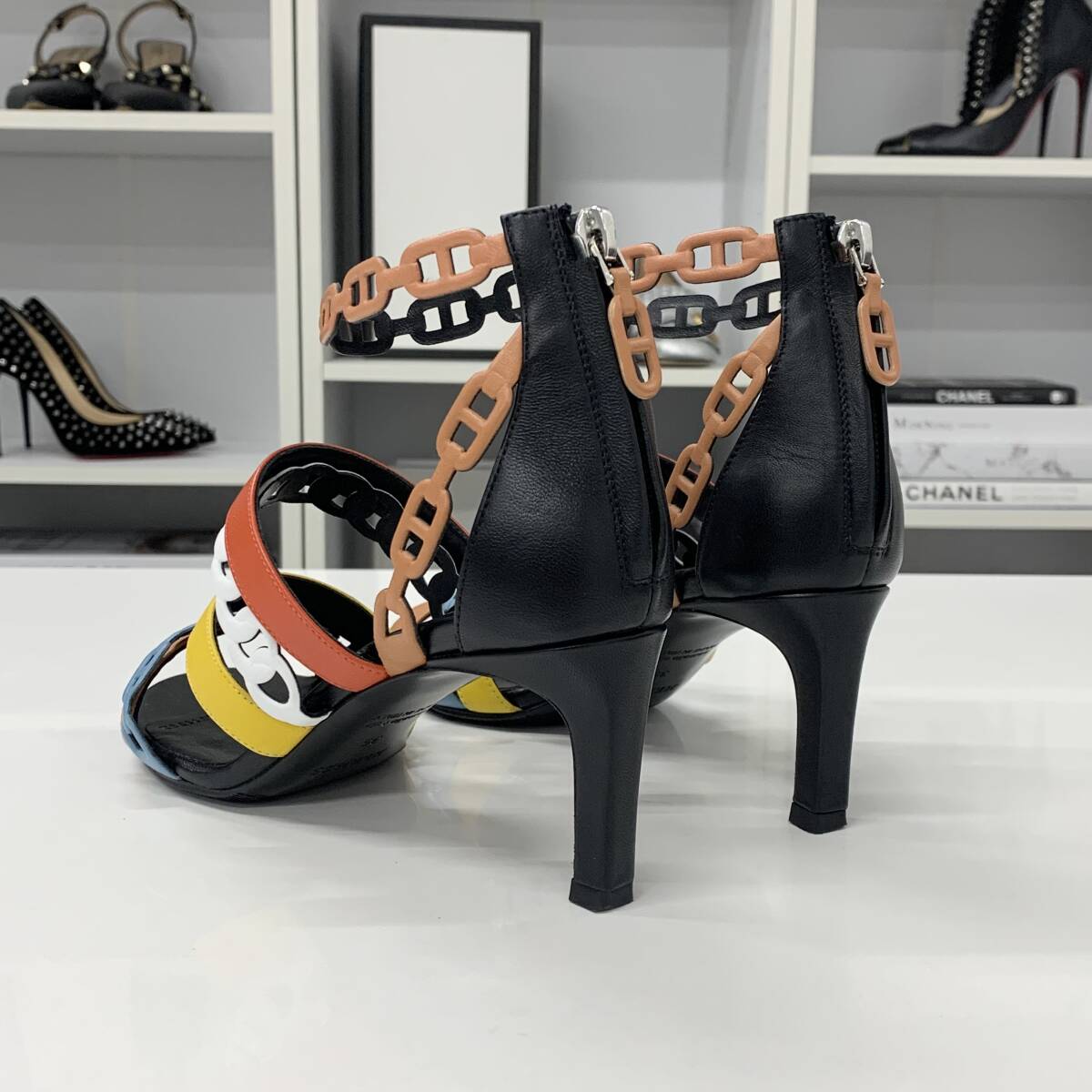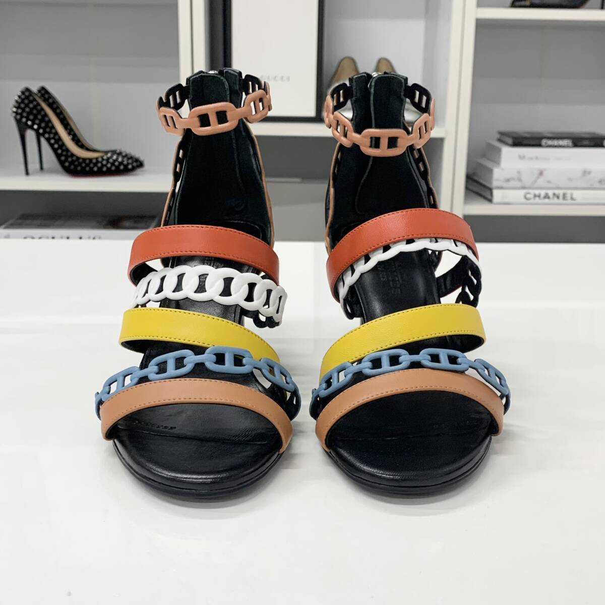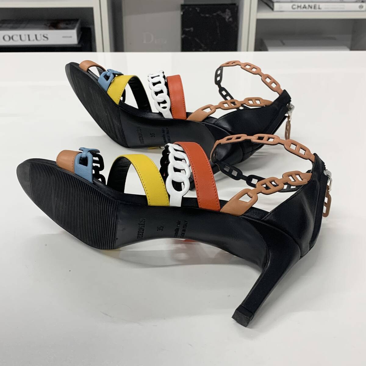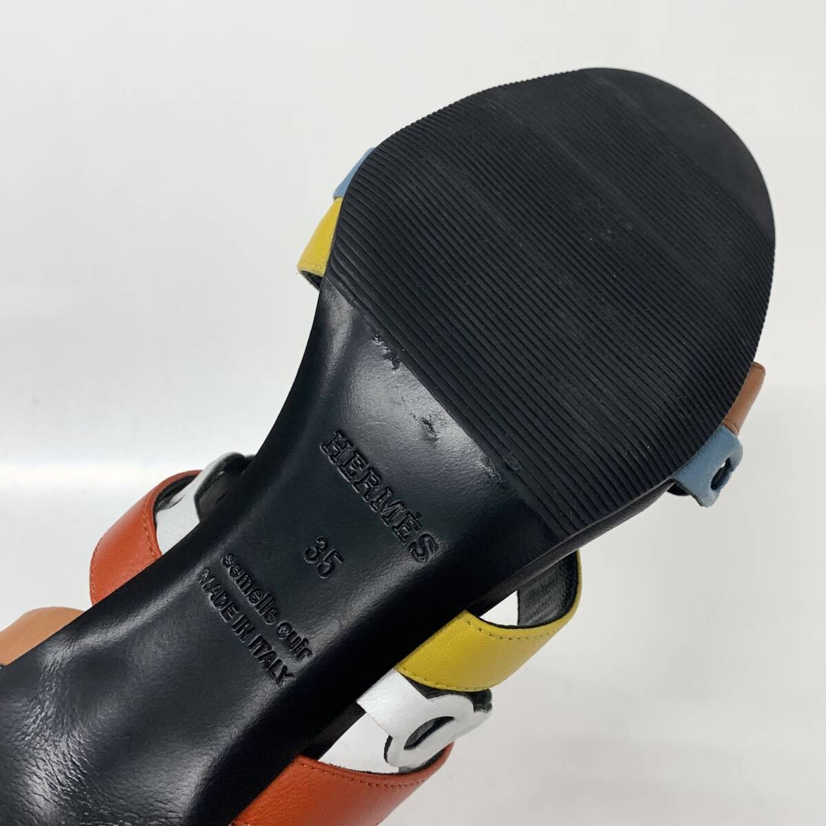 エルメス シェーヌダンクル レザー ストラップ サンダル マルチカラー