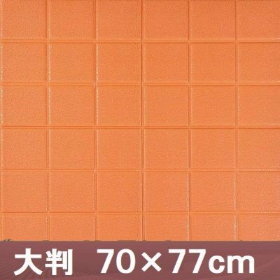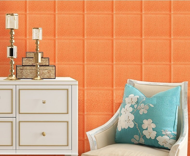【50枚】高品質 3D クッション 壁 シール スクエア×オレンジ レザー タイル調 糊付き リメイク 70×77cm 耐水 抗菌 傷防止