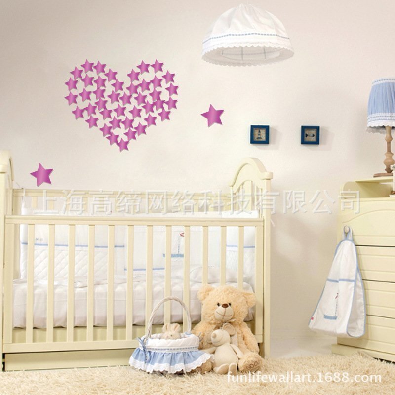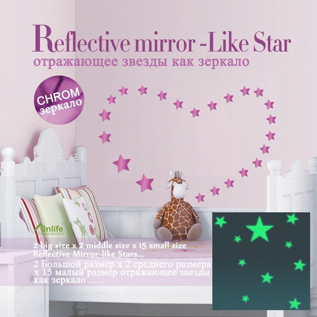 光る!ミラーステッカー 【星アソート/鏡面ピンク】 夜光 蓄光 壁紙シール リビング 寝室 子供部屋 ウォールデコ 模様替え