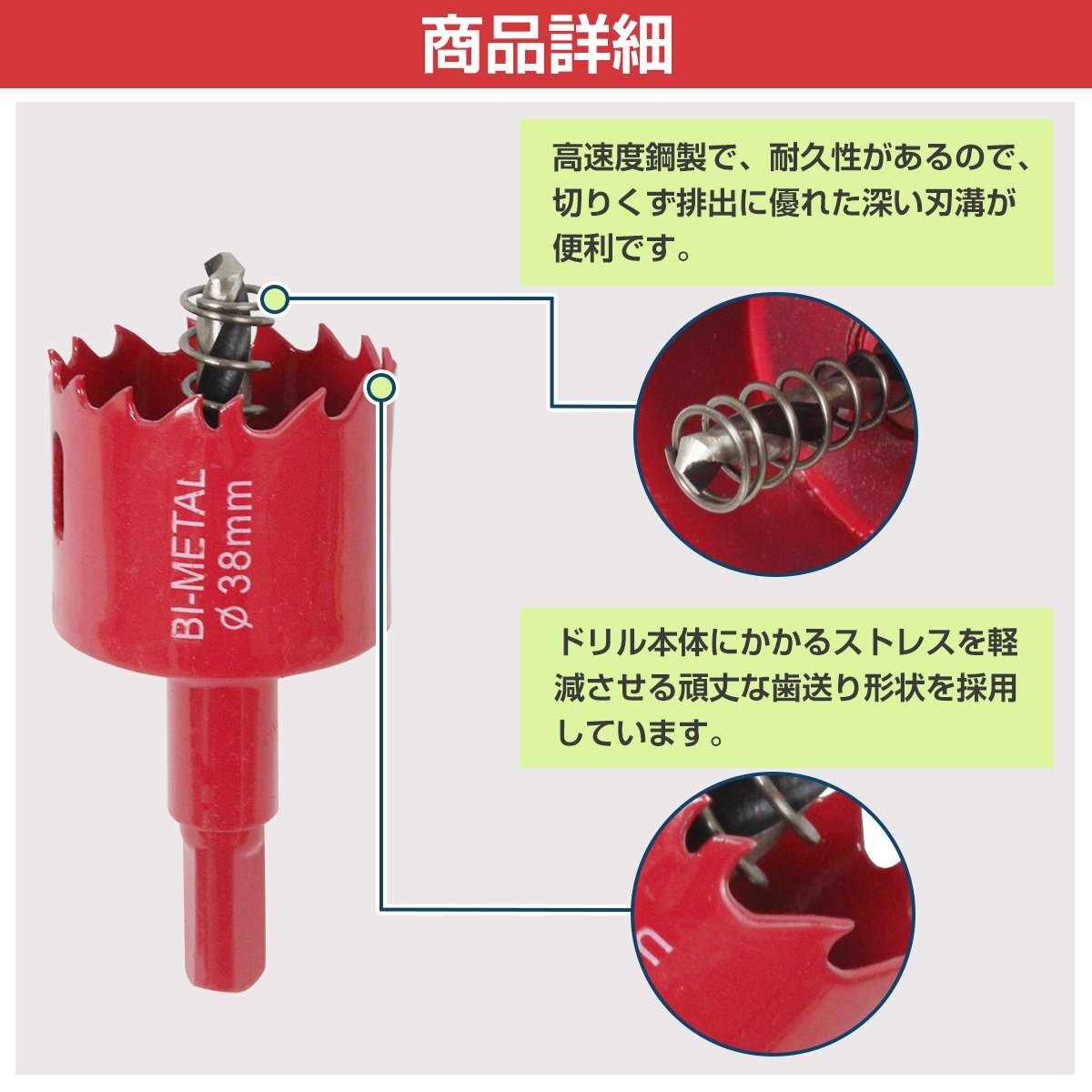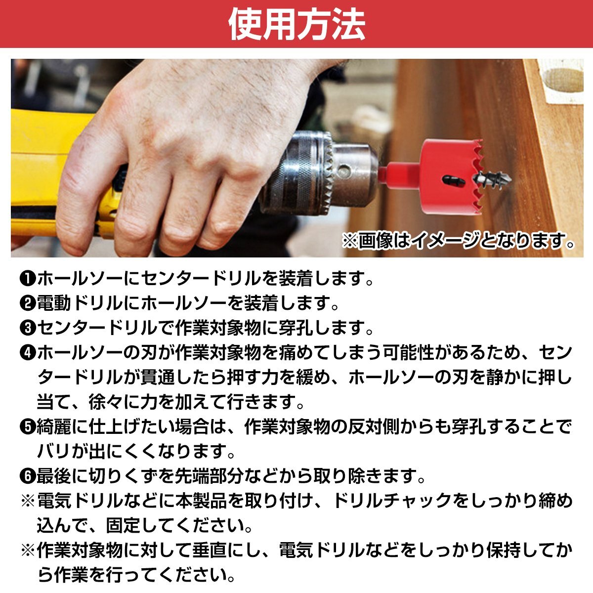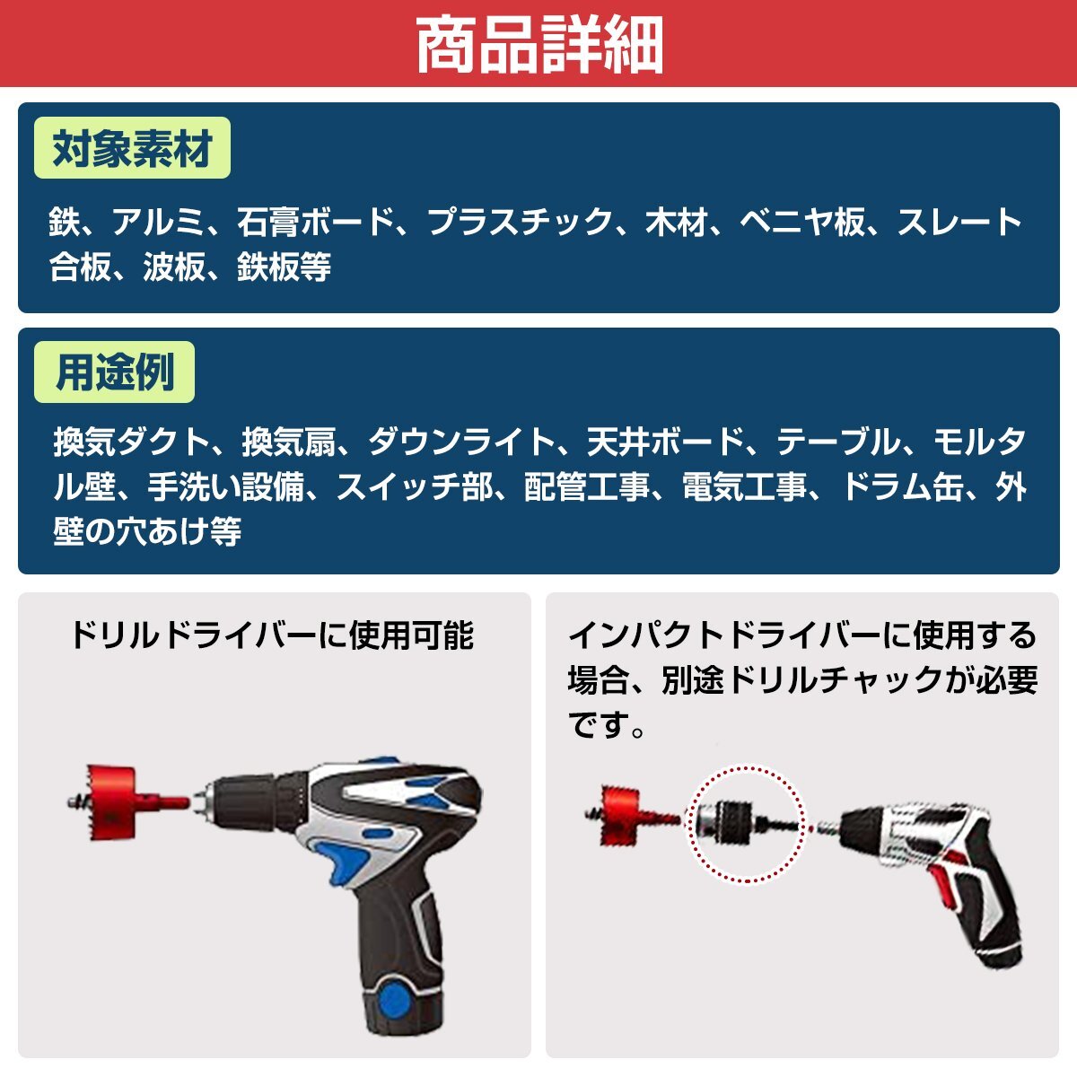 商 品 説 明木材やベニヤ板、石膏ボードや鉄など、様々な素材に穴を開けることができる