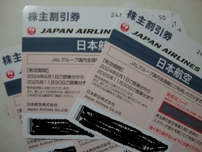 JAL日本航空株主割引券(紫色)が4枚組です。4枚の価格で入札してください。発券用コードのお知らせも可能です。この券1枚で日本航空が運営する国内線の普通運賃が半額となります。有効期限は2025年11月30日です。2025年11月30日までにはご搭乗ください。なお、繁忙期には座席数に制限があるようです。発券用コードのスクラッチ部を削りそのコーで購入ができます。定形郵便での発送は110円ですが、補償はありませんのでご了承ください。補償付きや速達など他の発送を希望でしたら差額の負担をお願いします。なお、お支払いについては簡単決済のみとなりました。普通郵便に限り土・日曜日は配達なしとなったようです。従って木・金曜日のお支払いや発送ですと、翌週月曜日か火曜日の配達となる見込みです。
