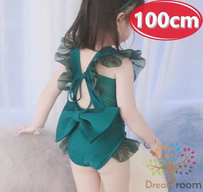 1スタ☆【100cm】デザインフリル ワンピース グリーン 水着 セパレート 子供服 女の子 韓国子供服 ビーチ 海 プール K-200