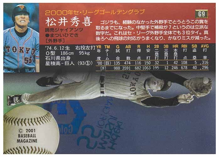 即決! 2001 BBM 2000 Golden Glove #G9 松井 秀喜 挿入 カード