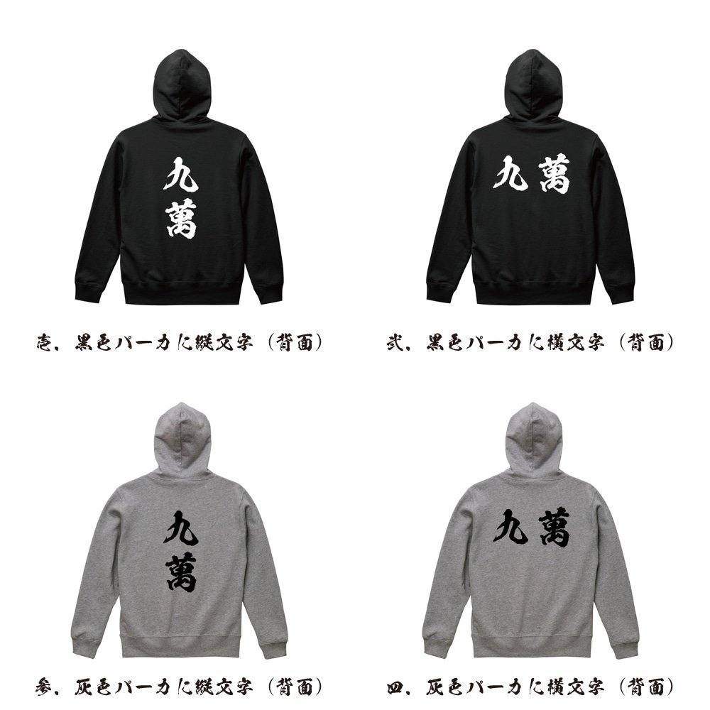 九萬 (キューマン) 書道家が書く デザイン フルジップ パーカ 【 麻雀 】 メンズ レディース キッズ