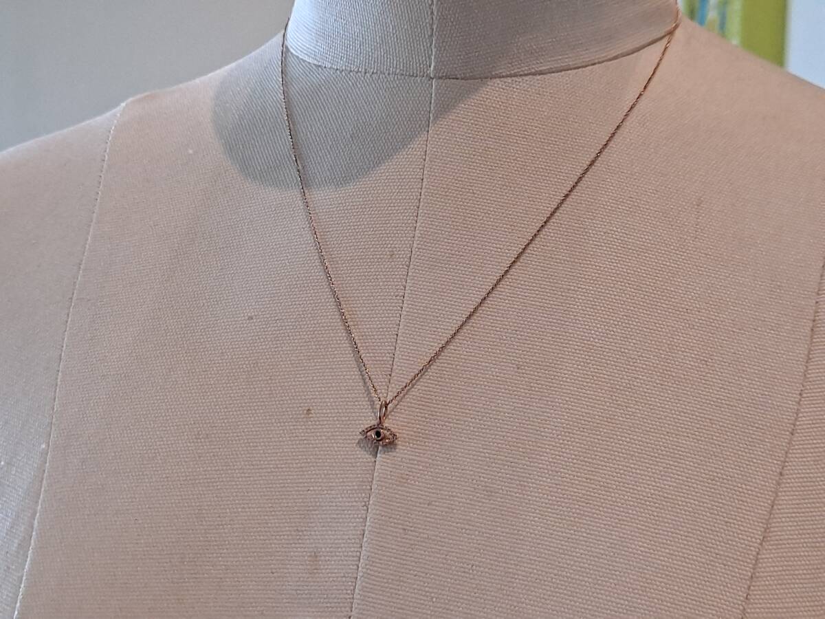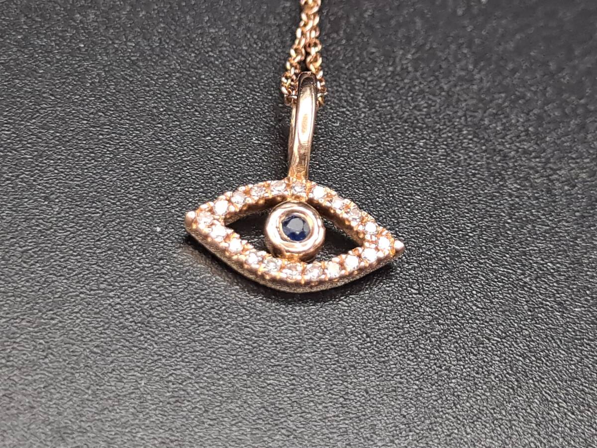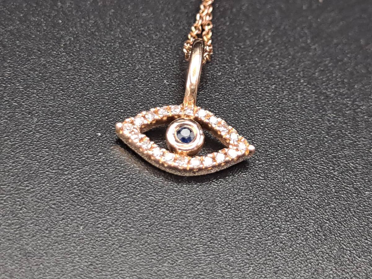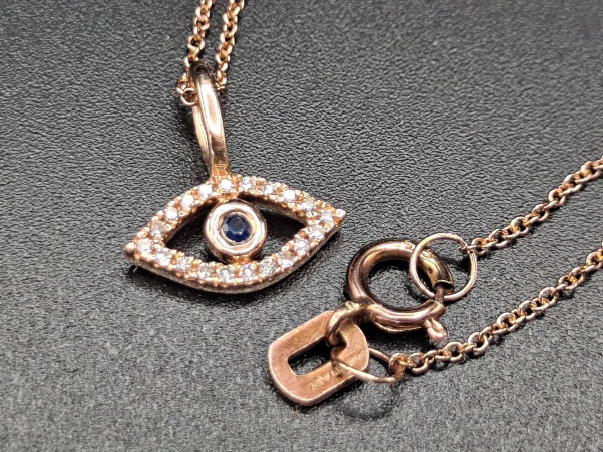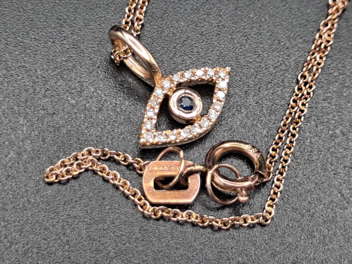 【10】14K刻14金ピンク/ローズゴールド 天然ダイヤ&サファイア「イーブルアイ」ペンダントTP&イタリア製アジャスター付チェーンネックレス | ||||