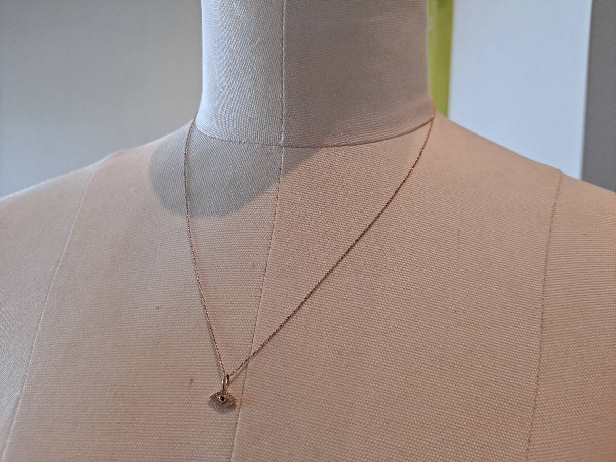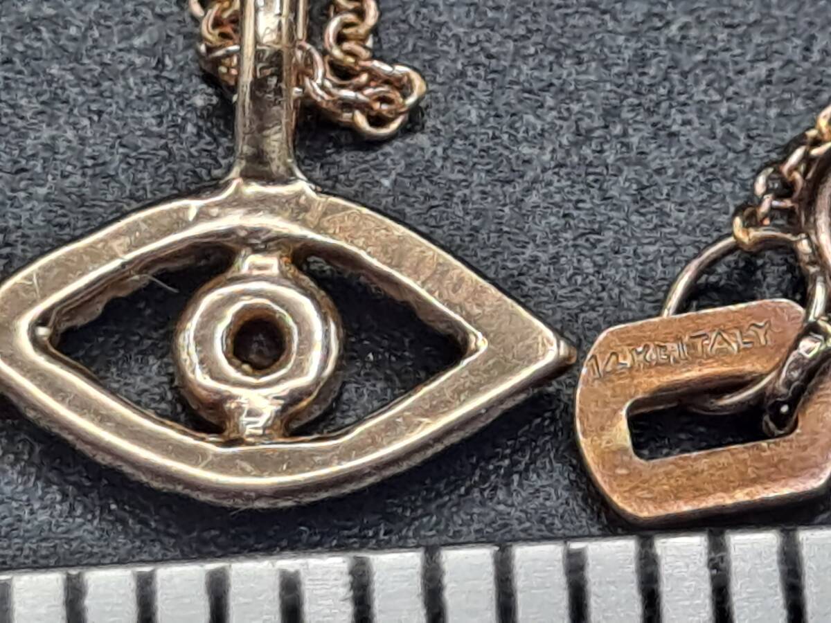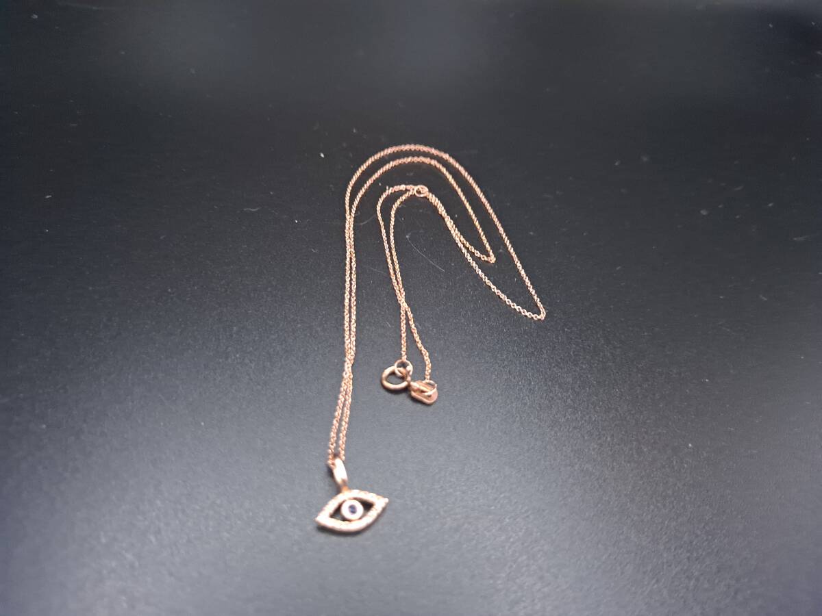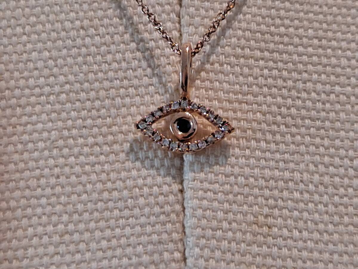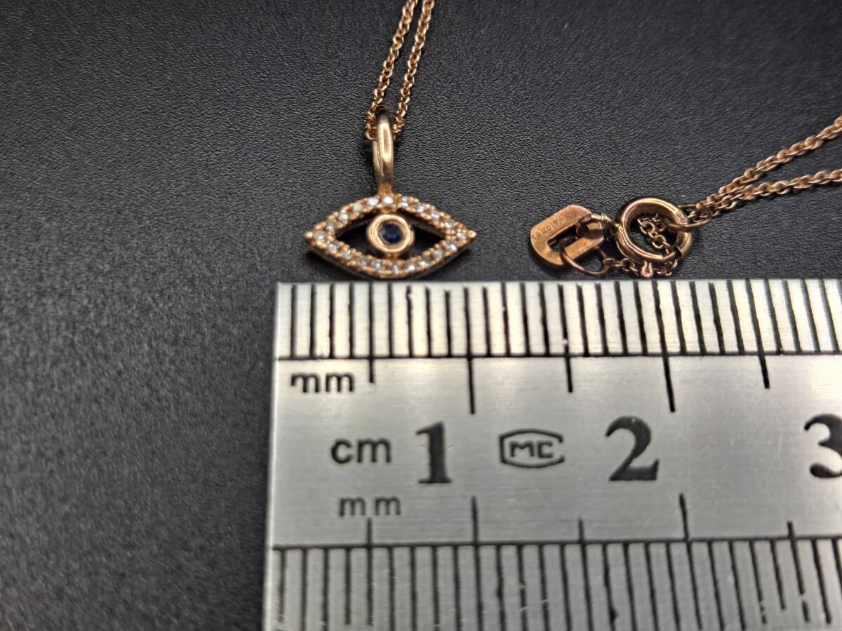 【10】14K刻14金ピンク/ローズゴールド 天然ダイヤ&サファイア「イーブルアイ」ペンダントTP&イタリア製アジャスター付チェーンネックレス | ||||