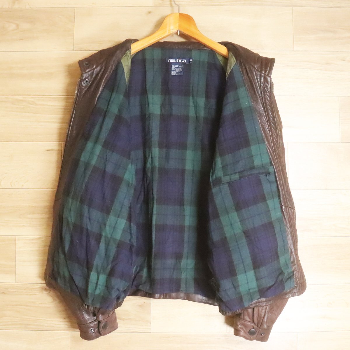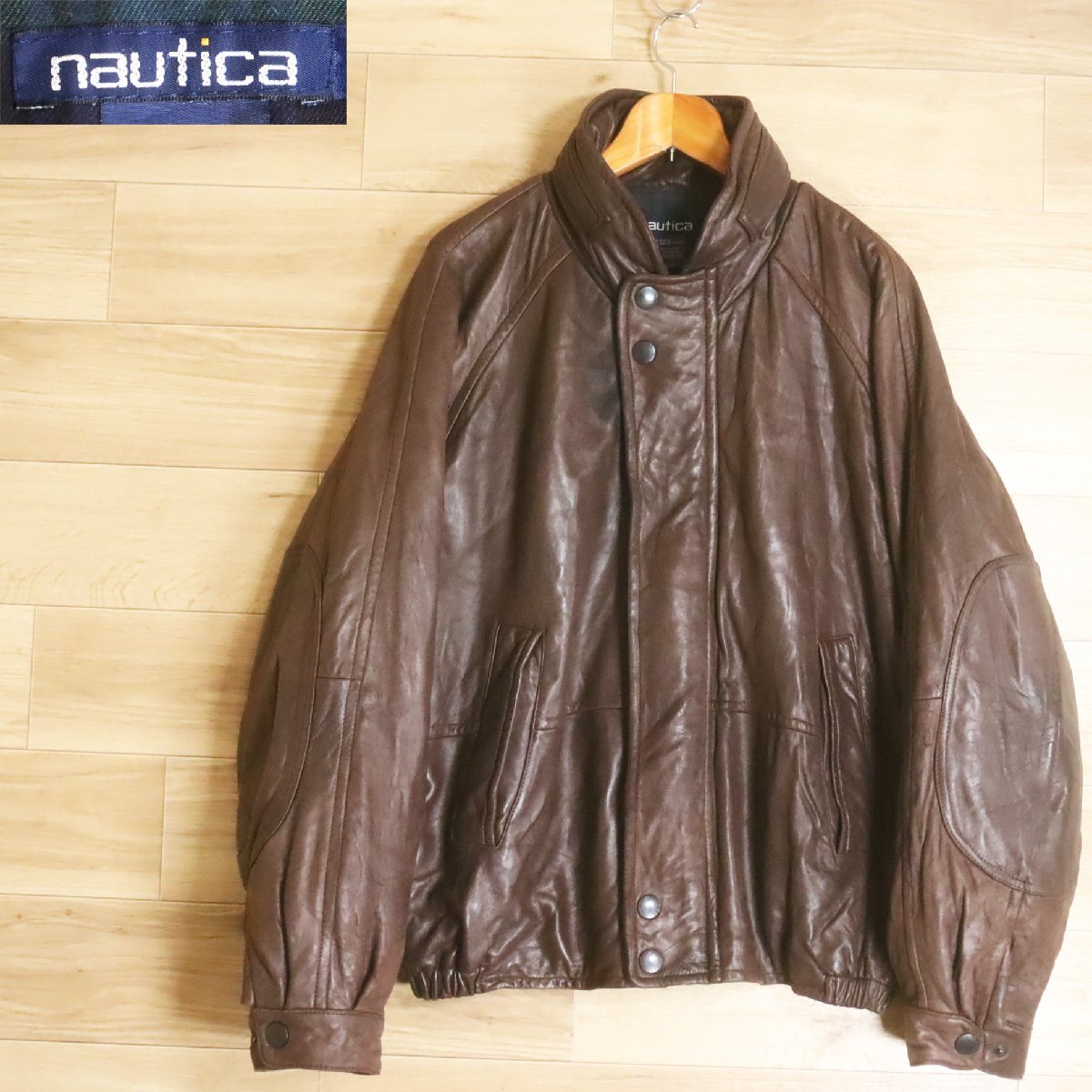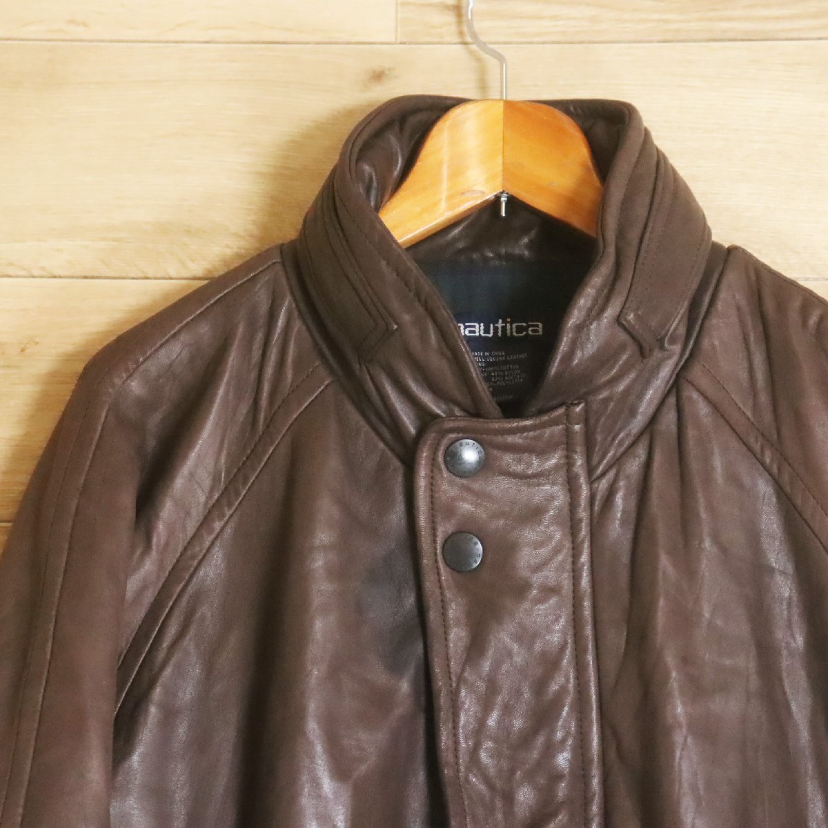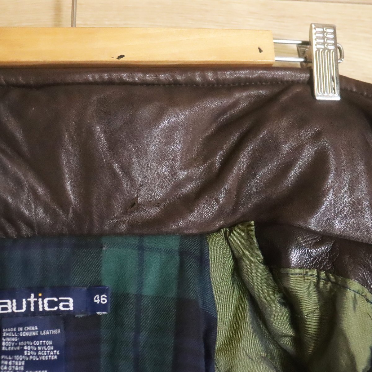 B20S/R6.24-3 NAUTICA ノーティカ 本革 レザージャケット 収納フード レザーブルゾン 革ジャン 皮ジャン 46 ダークブラウン