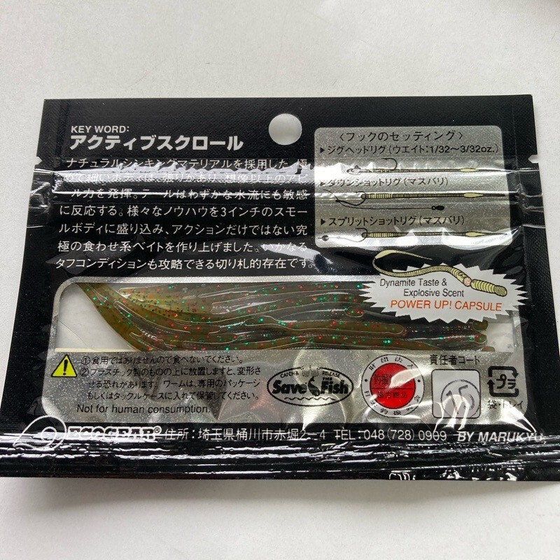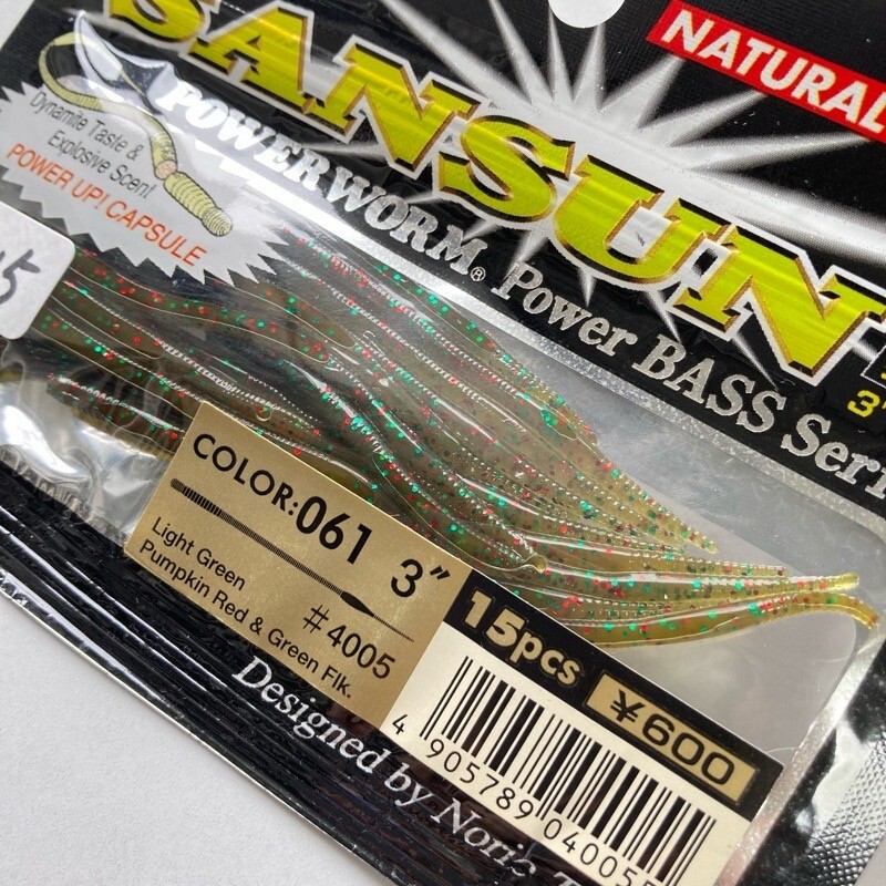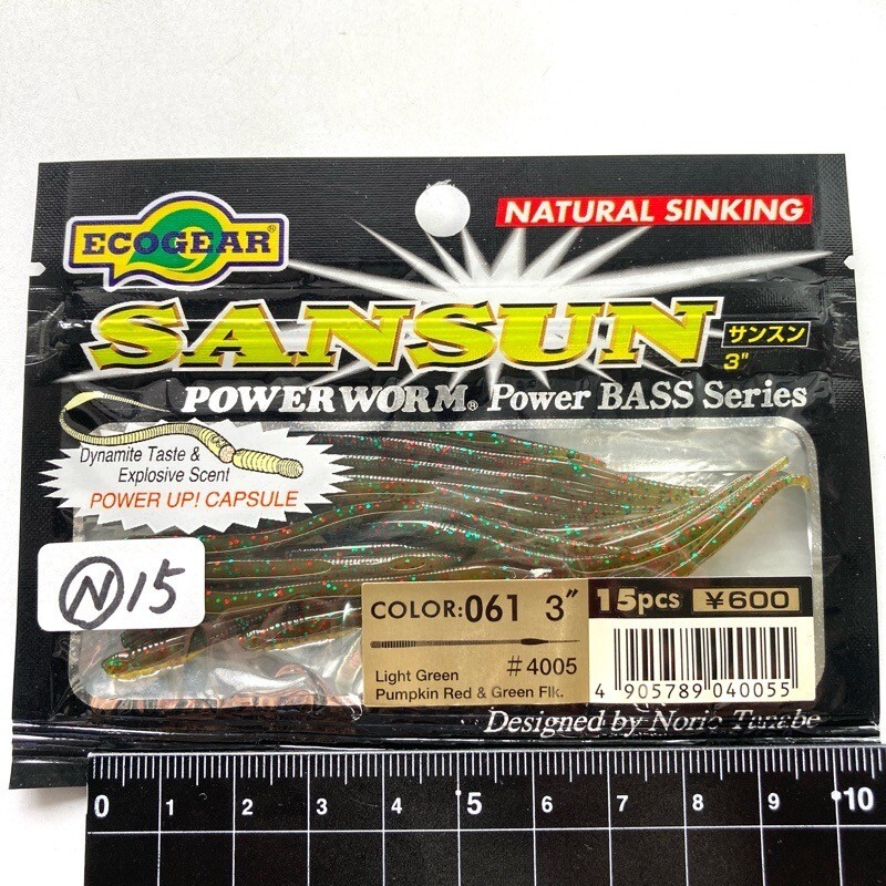 815663 新品 エコギア 3インチ サンスン 15本 #パンプキンレッド&グリーンFLK ECOGEAR パワーワーム メバル アジ カサゴ ソイ スモール