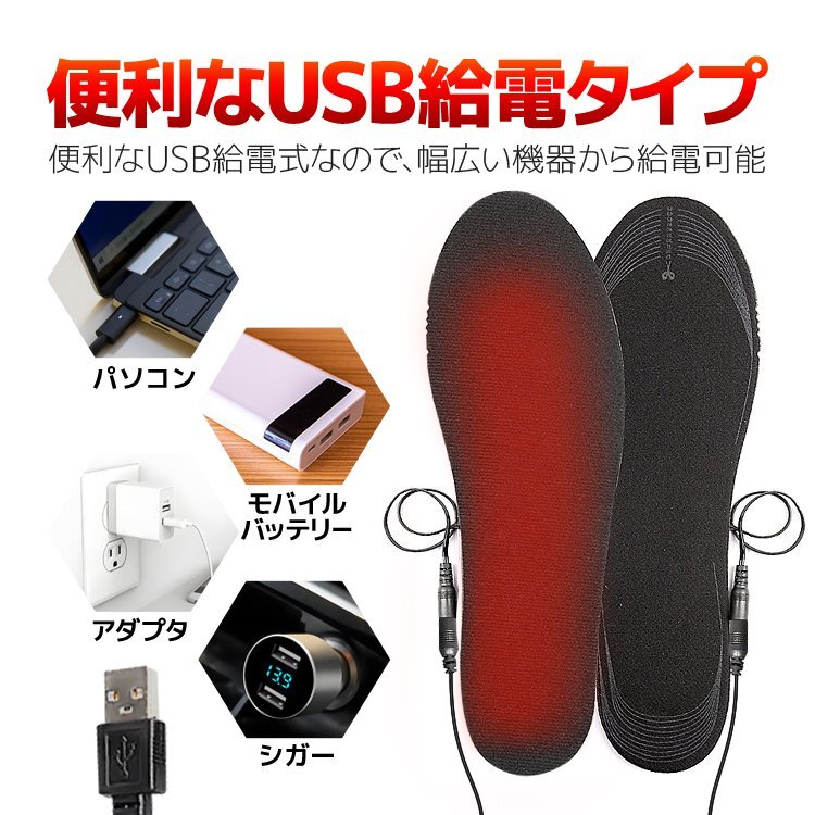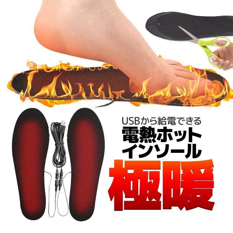◆USB給電 電熱ホットインソール 男女兼用 カットしてサイズ調整可能 水洗いOK 汎用 防寒 極暖 足裏ポカポカ オフィス/スキー/スノーボード/冬作業/釣り/アウトドアに UEHI003