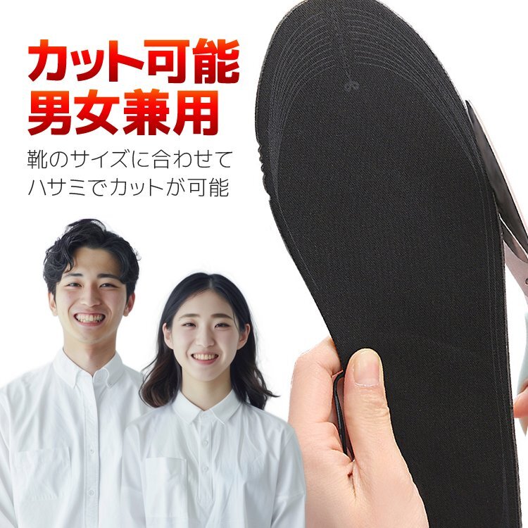 裏面にサイズガイドをプリントし、足のサイズに合わせてハサミでカットできるので、男女問わず様々な靴にフィット。