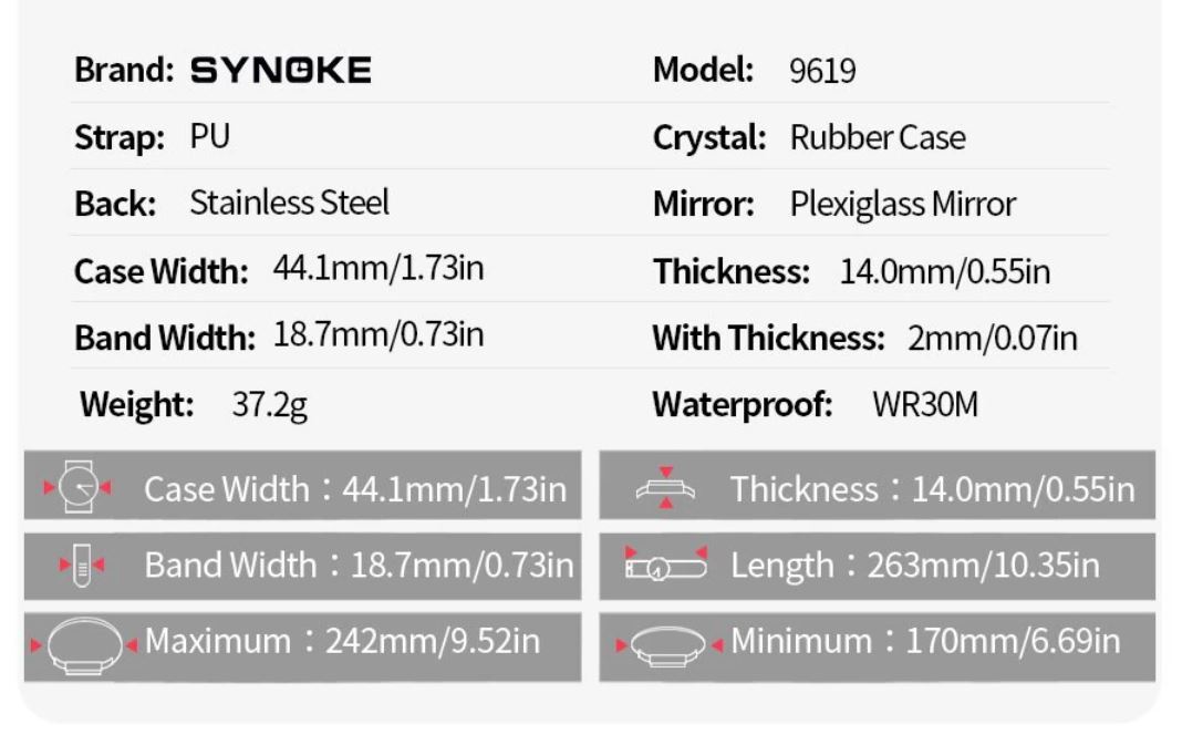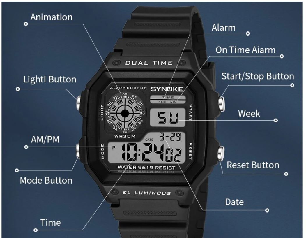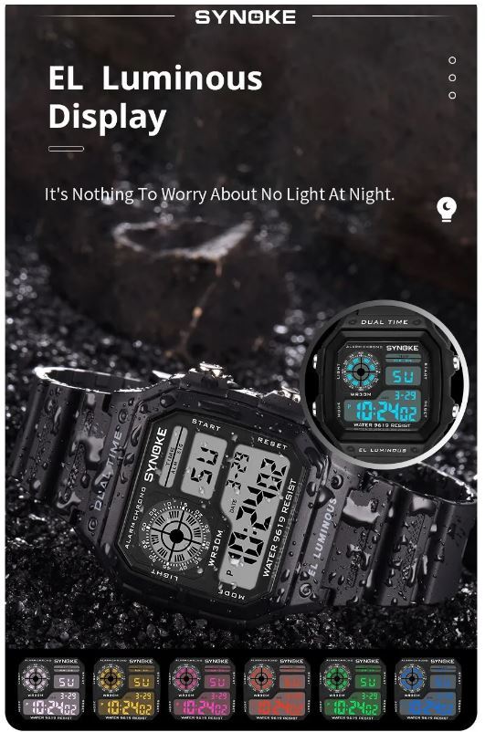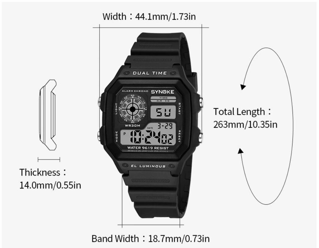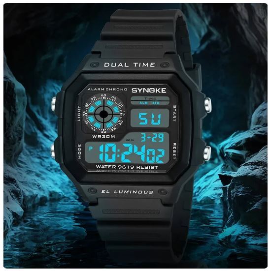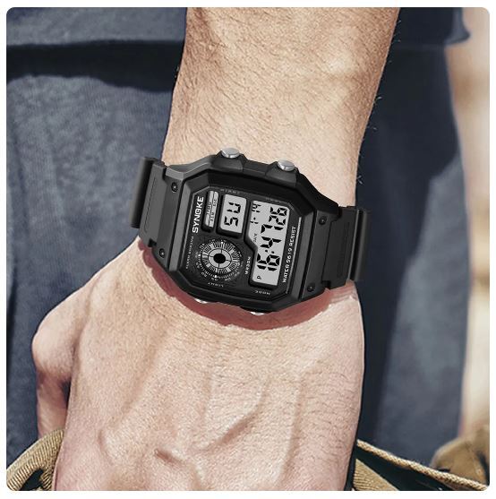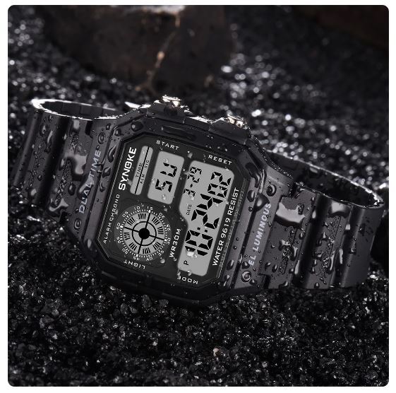 送料無料 未使用品 ブラック SYNOKE Eスポーツ デジタル 防水 スクエアウォッチ メンズ 腕時計