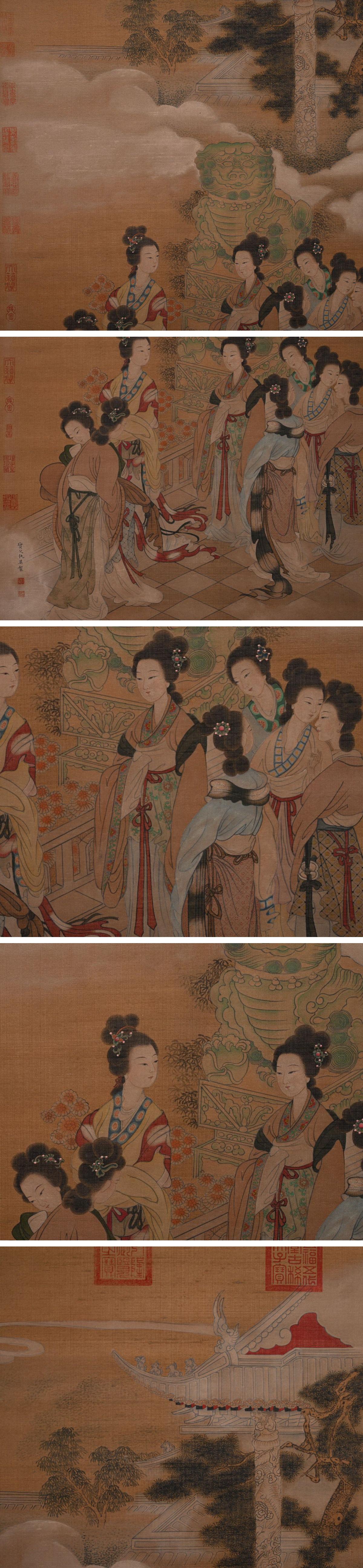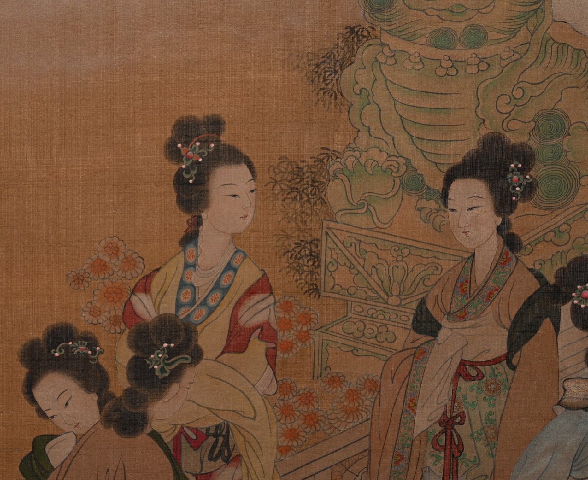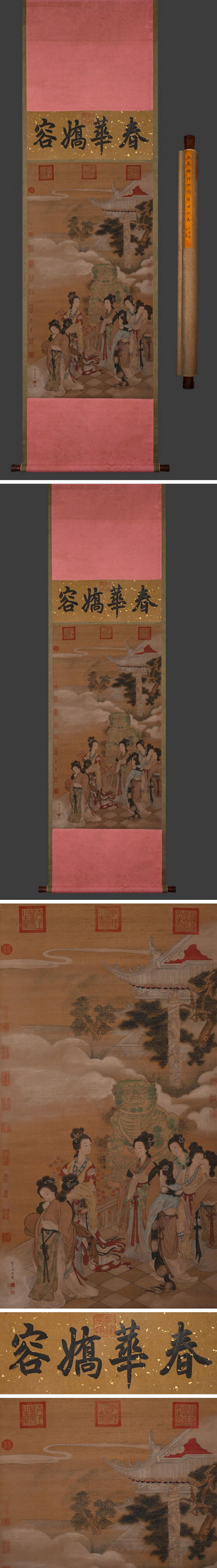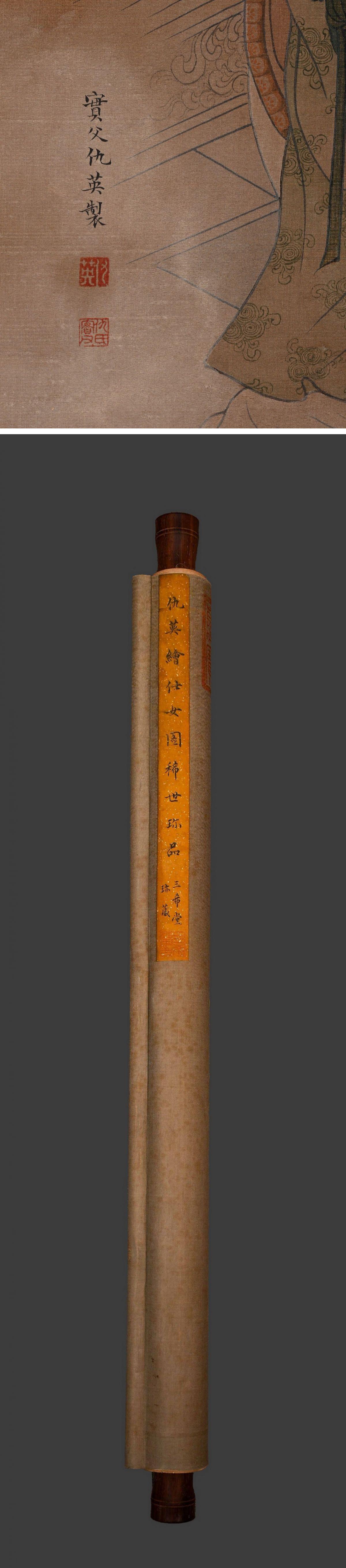【清】中国時代画家「仇英書」絹本「仕女図・掛け軸」巻き物 中国画 墨寶妙品 中国書画 古美味 古美術7L9-IN23