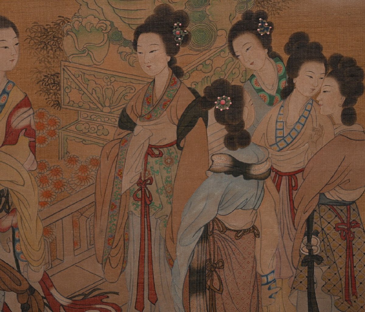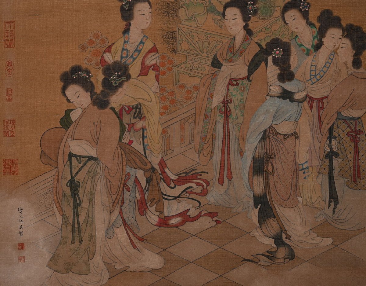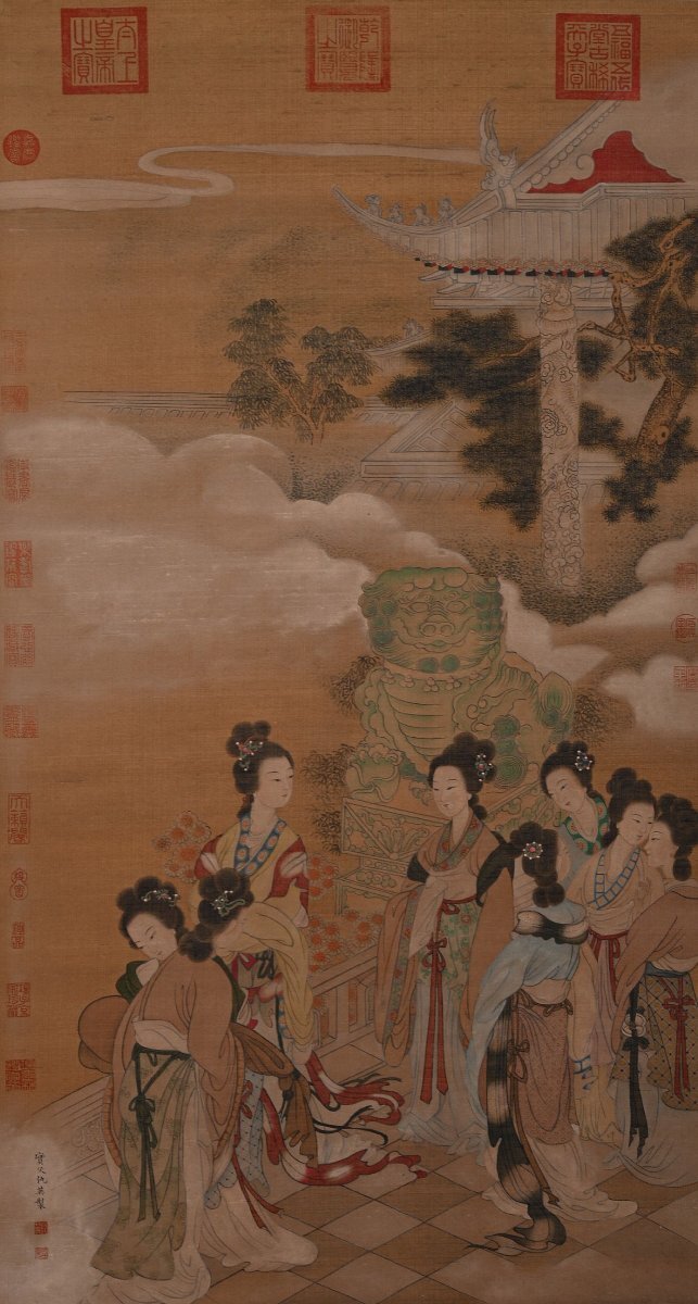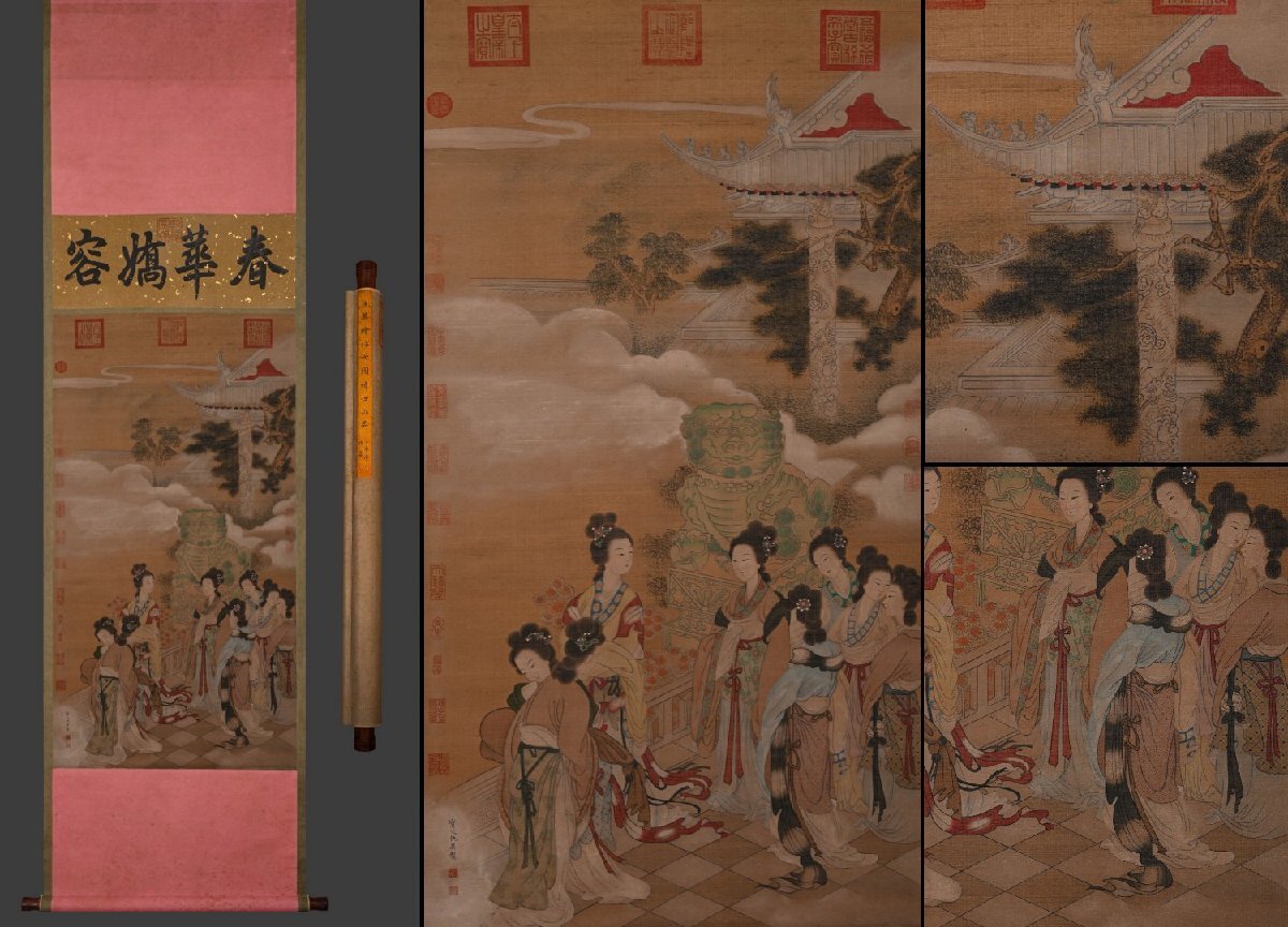 【清】中国時代画家「仇英書」絹本「仕女図・掛け軸」巻き物 中国画 墨寶妙品 中国書画 古美味 古美術7L9-IN23