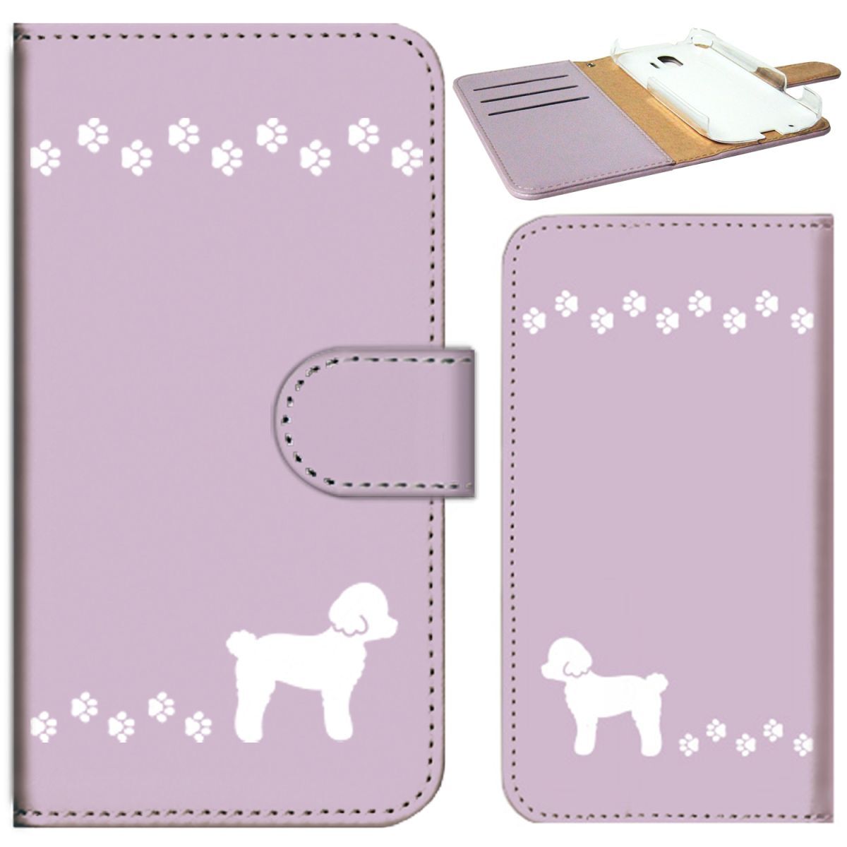 docomo らくらくスマートフォン F-01L/F-42A ケース 手帳型 (いぬのお散歩 かわいいプードル) FUJITSU F-01L-PD-MPR-YSZ-0434