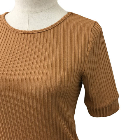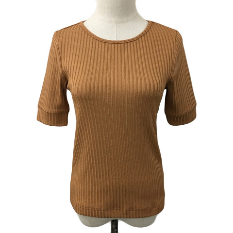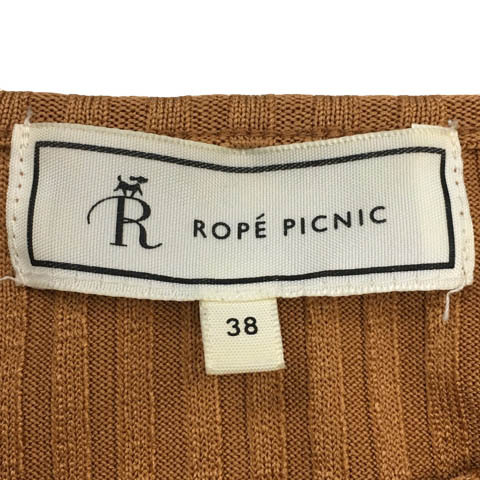 ロペピクニック ROPE Picnic カットソー ニット プルオーバー ラウンドネック リブ 無地 半袖 38 茶 テラコッタ ブラウン レディース