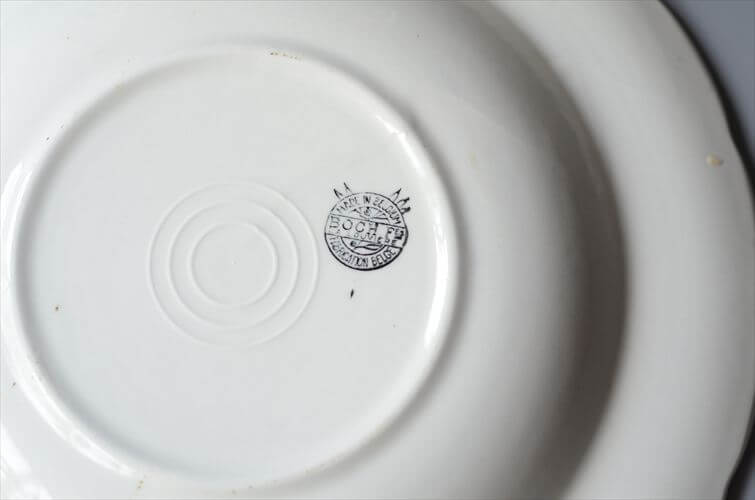 1930-40年代頃の物と思われアンティークの白磁器らしい優しくマイルドな風合いの素地感に雰囲気あるスタンプがよく映えています。