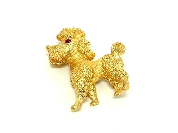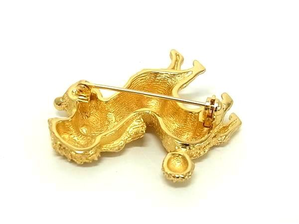 1円 ■新品同様■ ChristianDior ディオール プードル ドッグ 犬モチーフ ピンバッジ ピンブローチ アクセサリー ゴールド系 FR5197