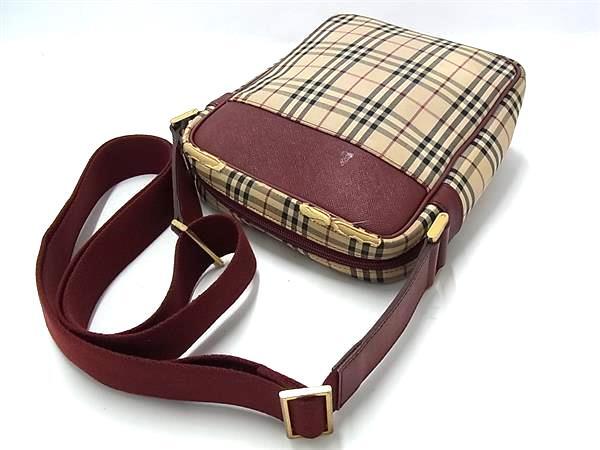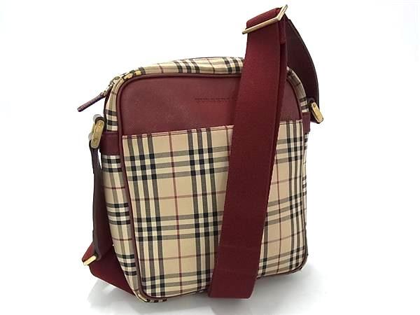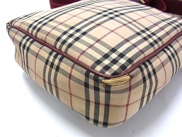 1円 BURBERRY バーバリー ノバチェック キャンバス クロスボディ ショルダーバッグ 肩掛け ベージュ系×レッド系 FN6680