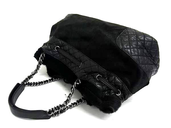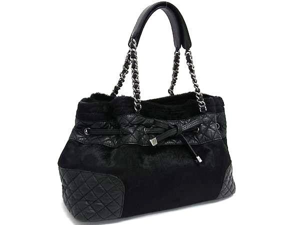 1円 CHANEL シャネル ココマーク マトラッセ ハラコ×レザー ハンドバッグ トートバッグ 肩掛け レディース ブラック系 BS0382