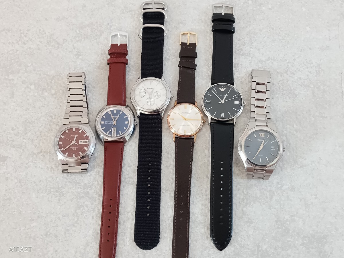 アルマーニやセイコークォーツ(5Y66-0AB0)など現時点で動作している物もありますが