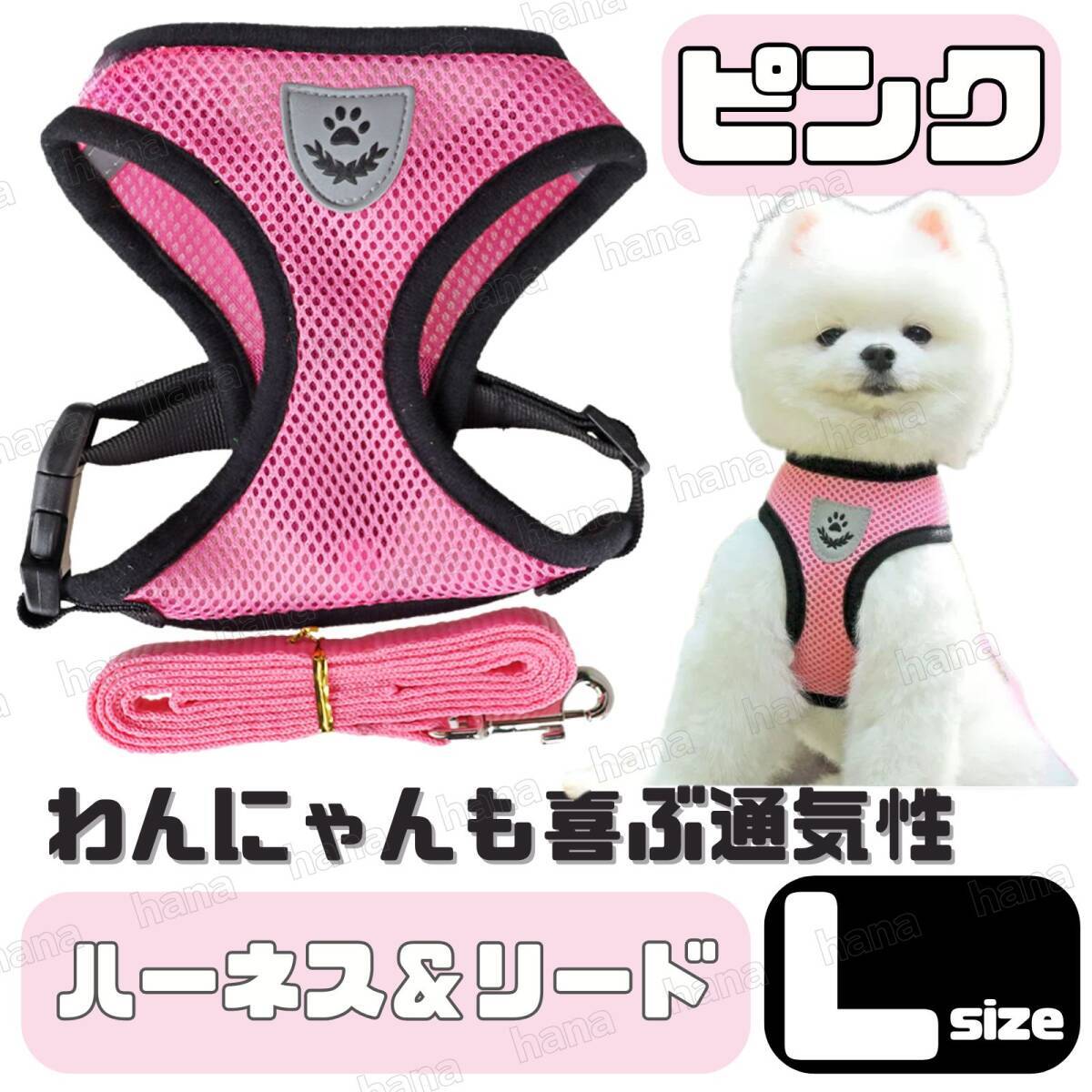 お散歩快適♪ ハーネス&リードセット ピンク Lサイズ