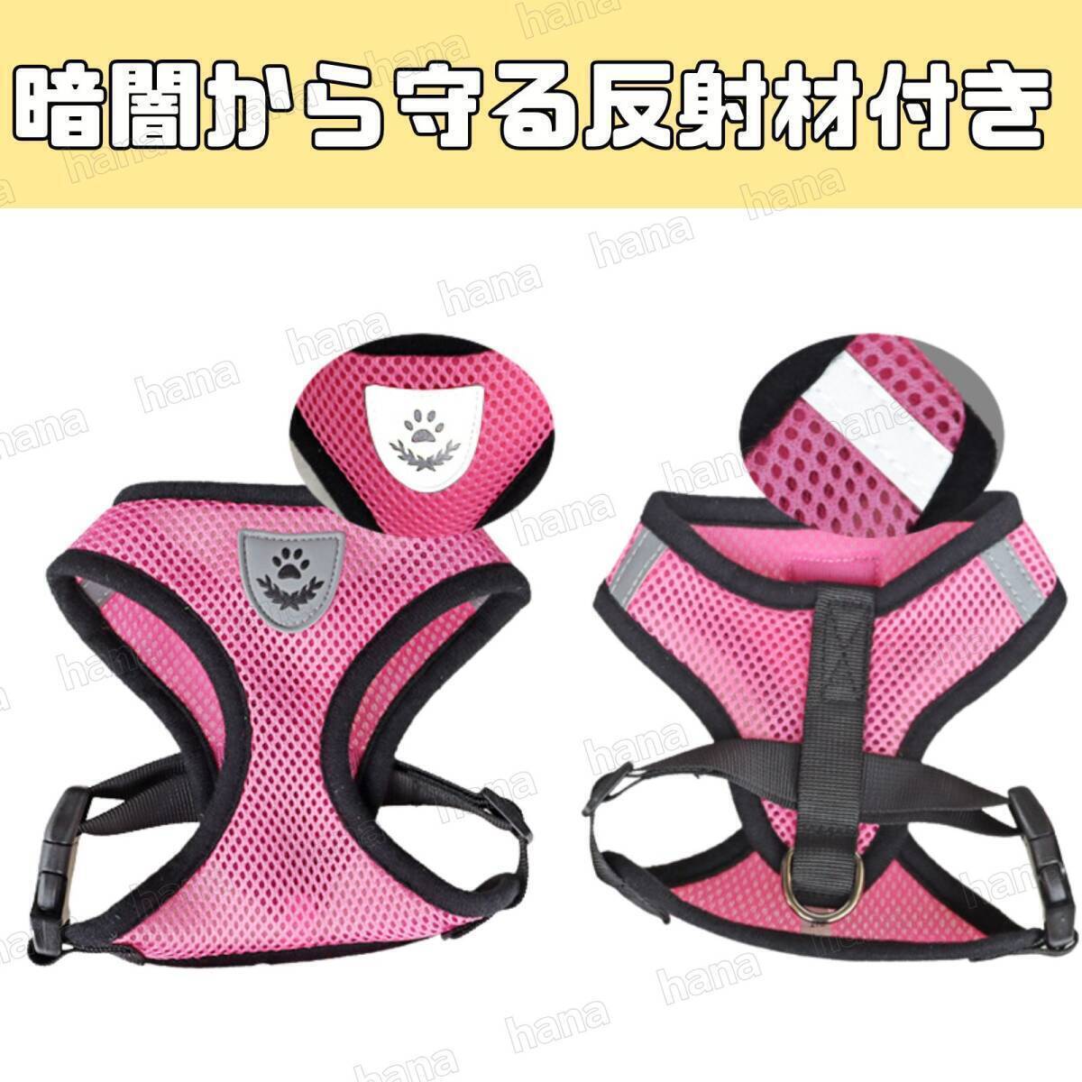 ハーネス リード メッシュ ペット 犬用 猫用 散歩 抜けない 脱げない 首輪 胴輪 超小型犬用 小型犬用 Lサイズ ピンク