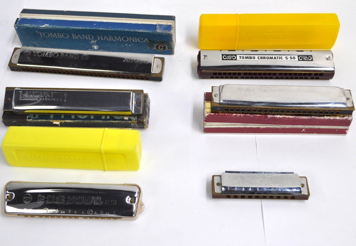 ▼商品名 | [まとめ売り] TOMBO SUZUKI ハーモニカ 計6点 トンボ スズキ S-50 FORKBAND 21HS トンボシングル クロマチック 複音ハーモニカ 28穴 レトロ |