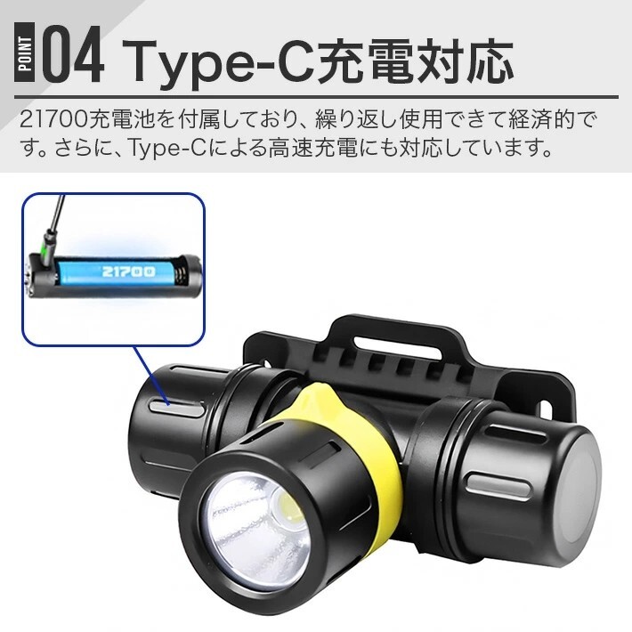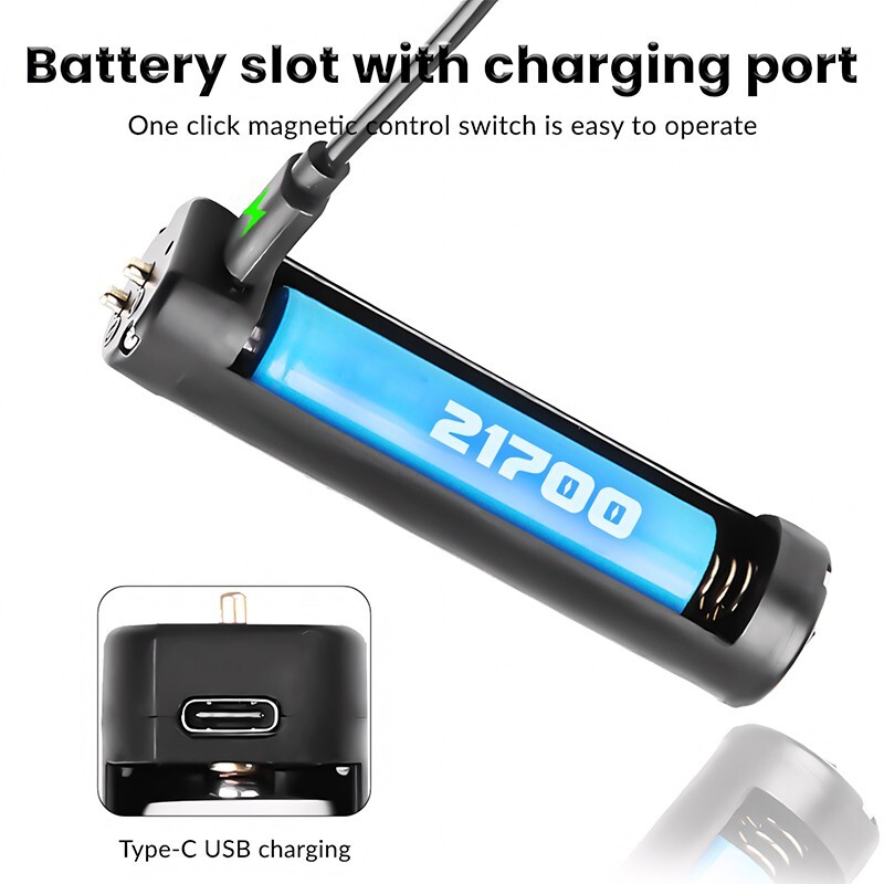 21700充電池を付属しており、繰り返し使用できて経済的です。さらに、Type-Cによる高速充電にも対応しています。