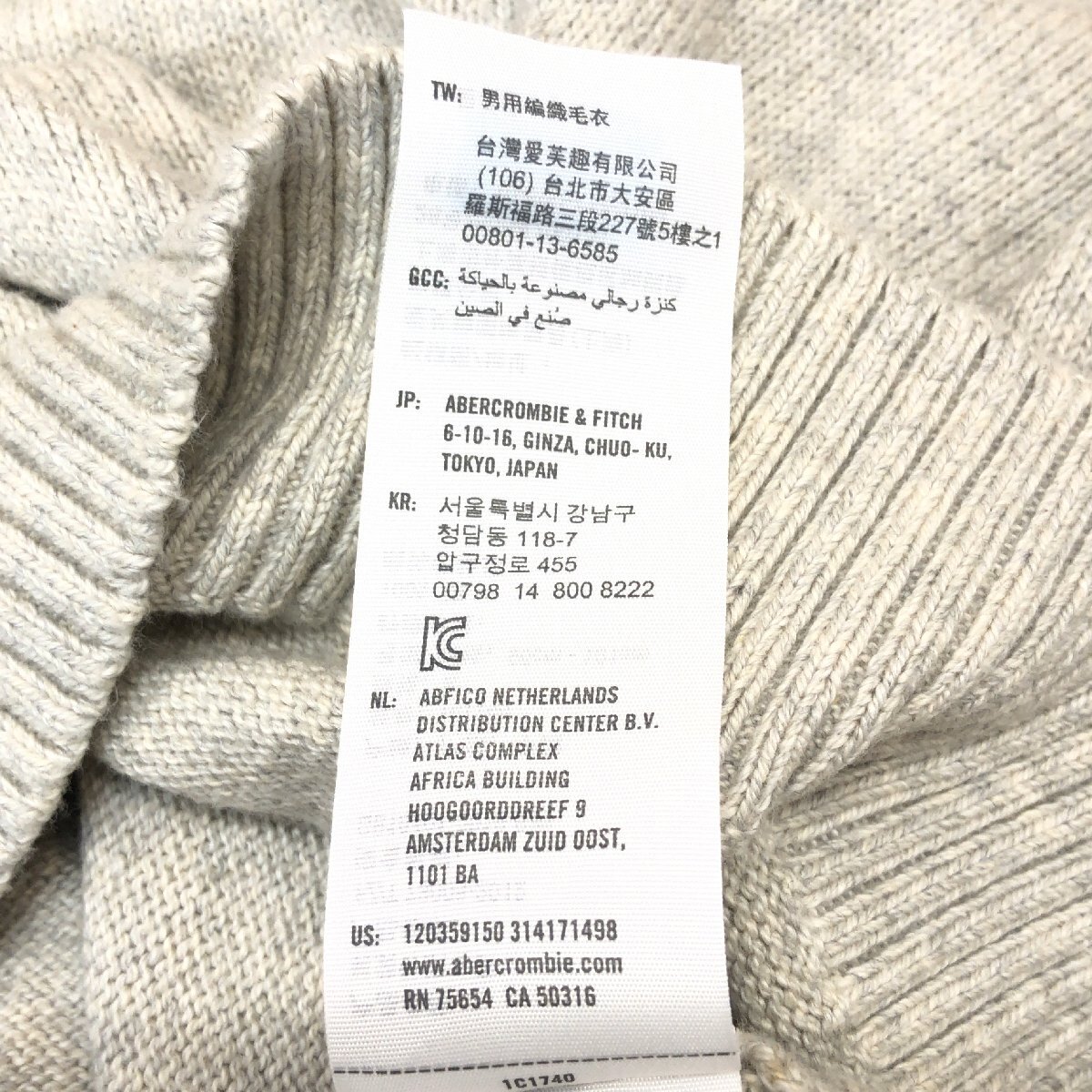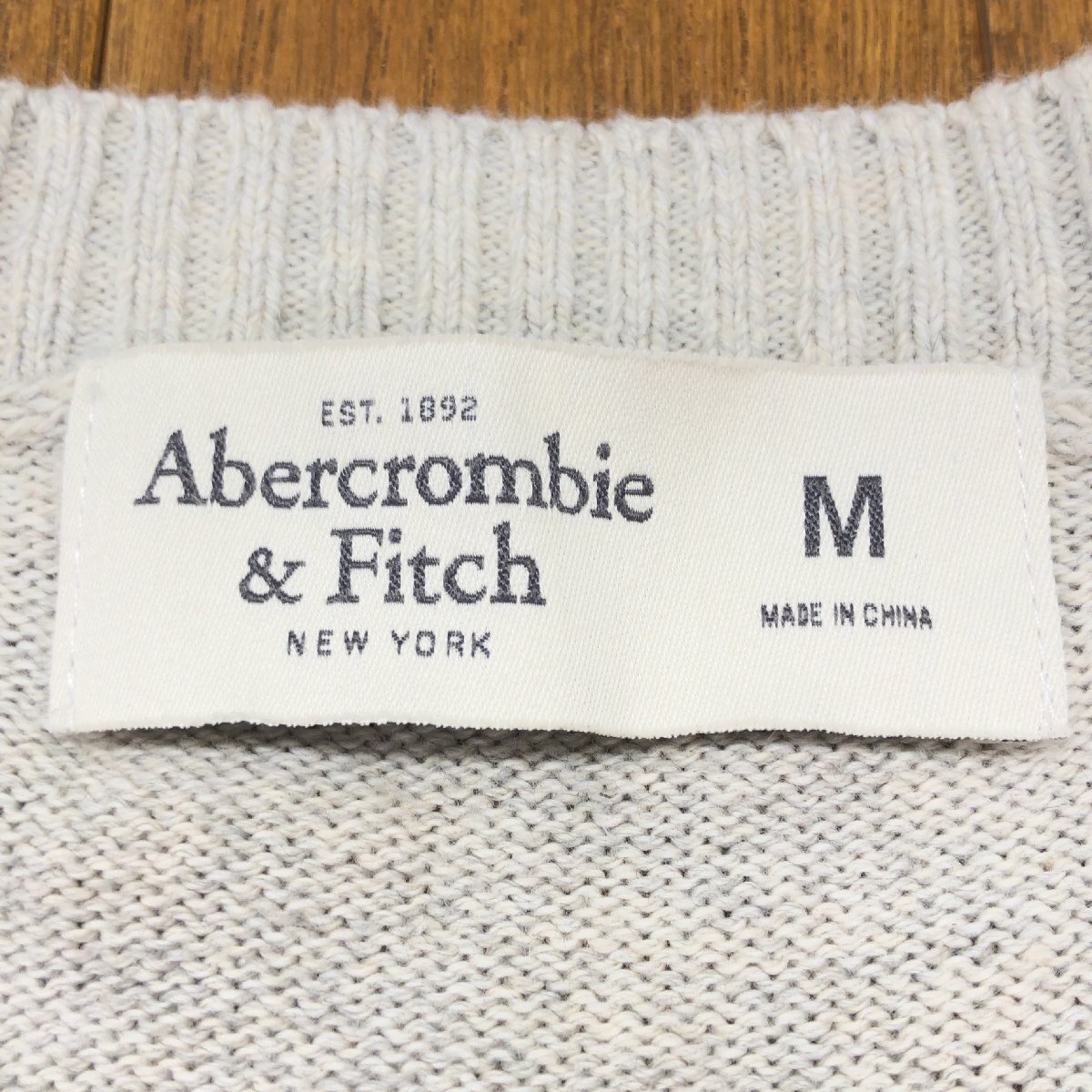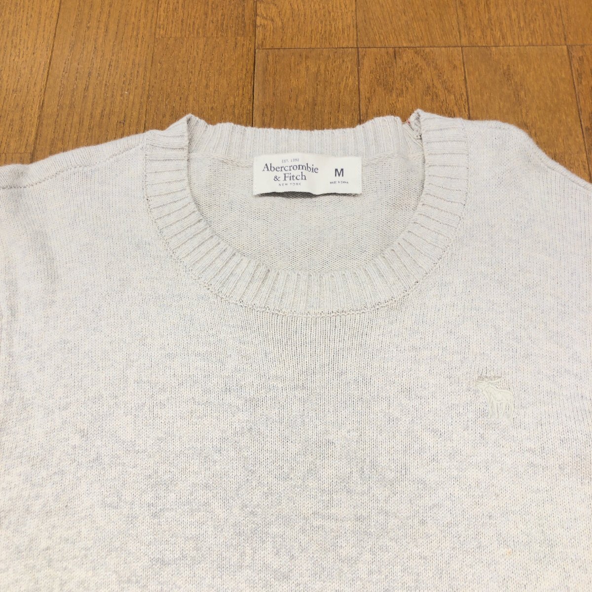 ●新品 Abercrombie&Fitch アバクロンビー&フィッチ ヘラジカ刺繍 コットン ニット セーター M ライトグレー アメカジ 古着 メンズ 未使用