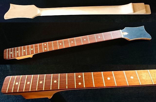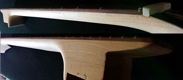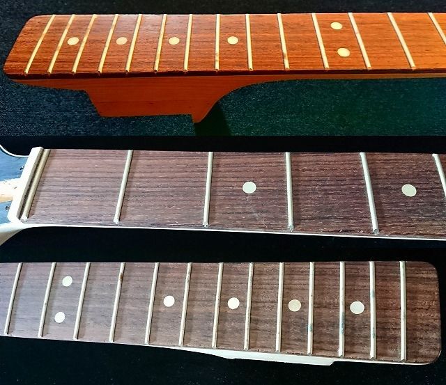 0フレットから12フレットまでの距離38cm ローズウッド指板 セットネック仕様 22Fです。 新品未使用ですが逆反りしておりますのでジャンク扱いです。 保存時の傷あり、フレットにもサビありです。 かなり細身のネック、自作用に、逆反り修正できる人どうぞ。 指板400R ほぼフラット つば出し22F ローズウッド指板 重量~548g ナット側幅40.5mm ボディ側エンド幅49.6mm ジョイント部分の厚み≒48.3mm フレット幅2.0mm フレットの高さ1.0mm 充分残しております。 ネック裏は標準的なCシェイプ 発送費用目安 発送は佐川急便元払い ※送料の目安~近畿・(破損到着時の保険費込み) 100サイズ・1400円 ※関東,信越,北陸, 東海, 中国, 四国,九州方面まで(破損到着時の保険費込み) 100サイズ・1500円 (もし可能であれば安全配送の為に時間指定していただけますと幸いです) 離島等の陸路が使えない場合は事前に質問欄でご確認いただくか、応相談になります。 当方も苦労しております、職場転送や営業所留め対応可能です。 ☆返品対応は到着後一週間以内です。 画像でご判断いただき御理解の上ご入札下さい。 質問等もお早めに。 ☆稀にタイピングミスや数値、単位等で説明に不明瞭な事があるかもしれないので心配な 方は質問欄で遠慮なくご質問下さい。