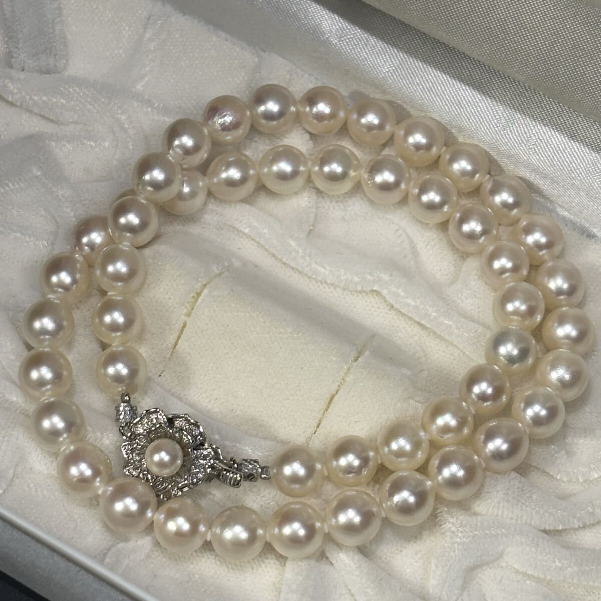 照り強●あこや真珠 ネックレス 本真珠 パール 7.8㎜-8.4㎜ 43㎝ 42g pearl jewelry necklace silver刻印 シルバー金具 アコヤ ジュエリー