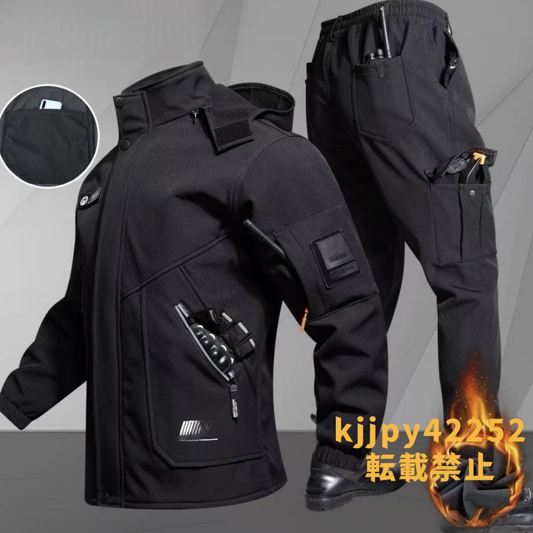 裏起毛 2点セット秋冬新作 防水防風ジャケット 上下セット アウトドアスポーツウェア 釣りセット 釣り服 防寒対策 ブラック XL