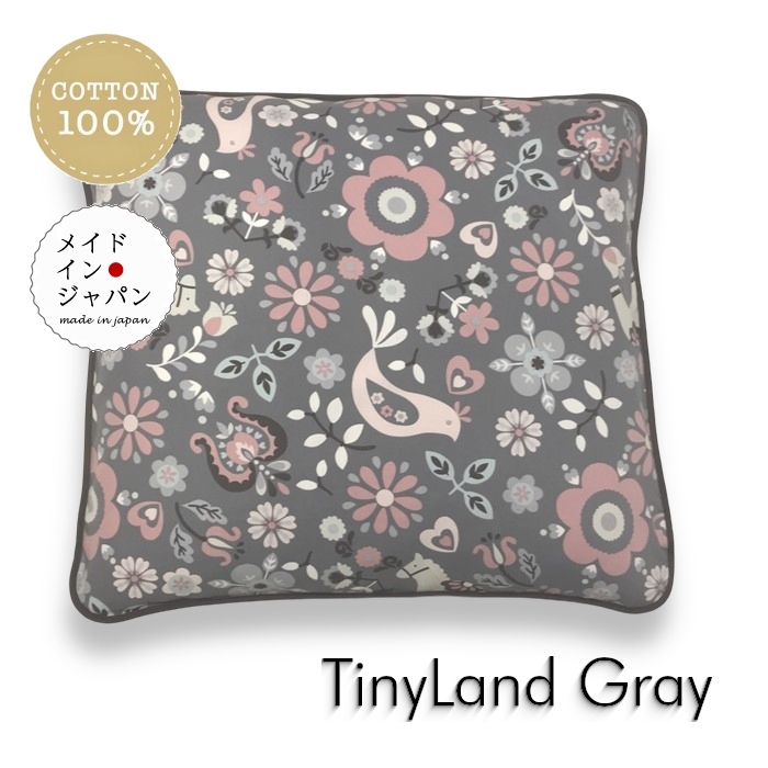 銘仙判座布団カバー タイニーランド グレー 北欧 ボタニカル柄 ざぶとんカバー 55×59cm 綿100%
