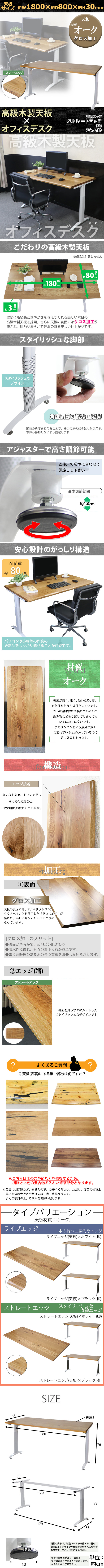 | 商品名 | 送料無料 オフィスデスク デスク 約W180×約D80×約H76 約W1800×約D800×約H760 オーク材 高級 木製 天板 グロス加工 耐荷重約80kg(脚部) 平机 ワークデスク 事務机 パソコンデスク PCデスク 事務デスク オフィステーブル オフィス家具 会社 事務所 会議用 ストレートエッジ 脚色 ブラック t016180oakg |