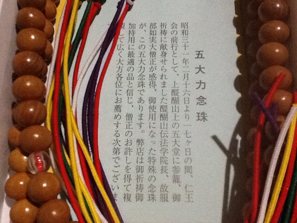 ◆醍醐寺 服部如実 大僧正が感得されたのが、五大力念珠です。