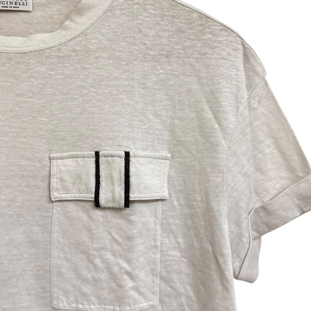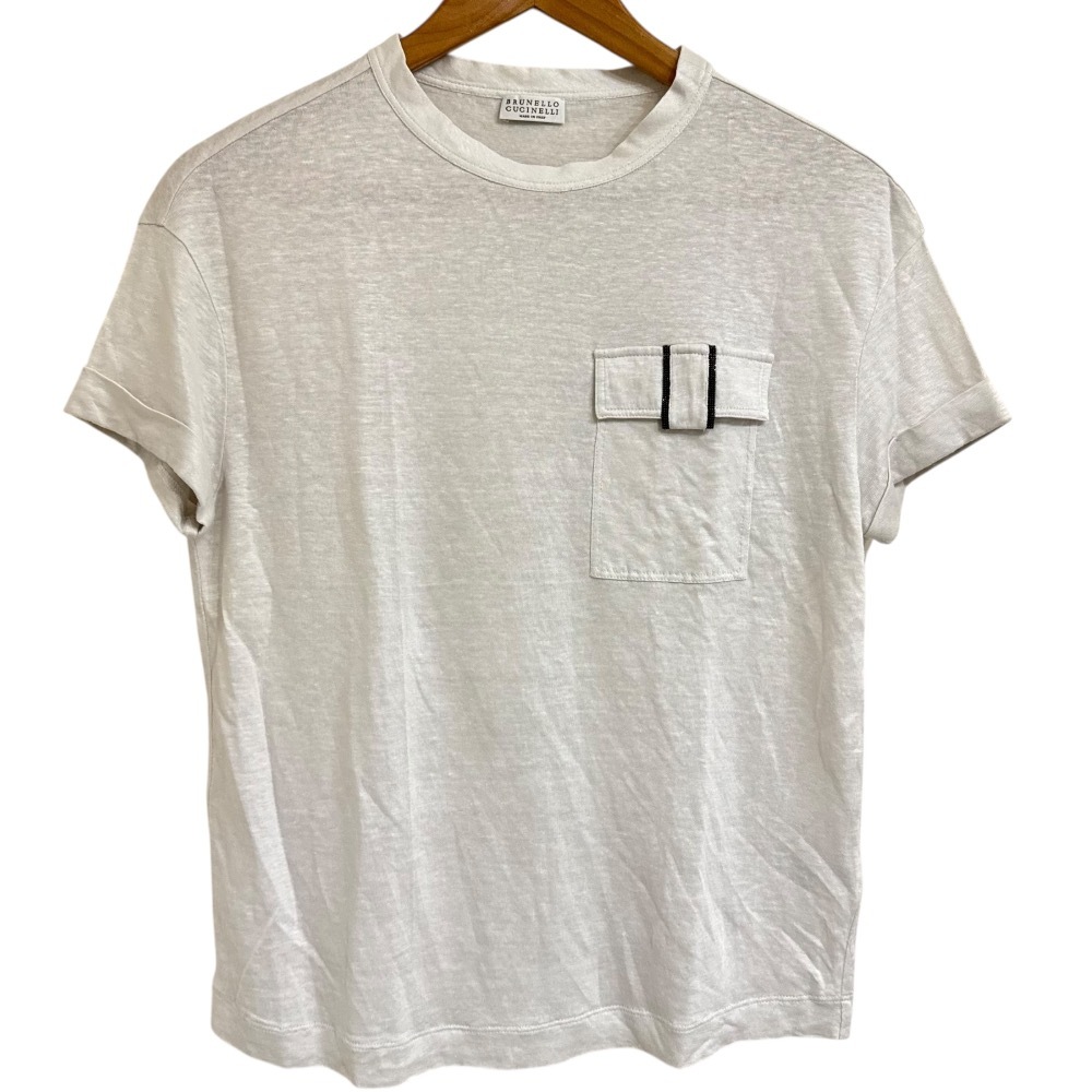 美品 23SS BRUNELLO CUCINELLI ブルネロクチネリ リネン×シルク 半袖 モニーレ装飾ポケット Tシャツ サイズXS ライトグレー