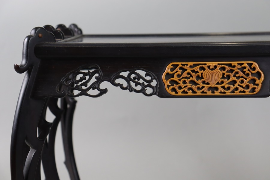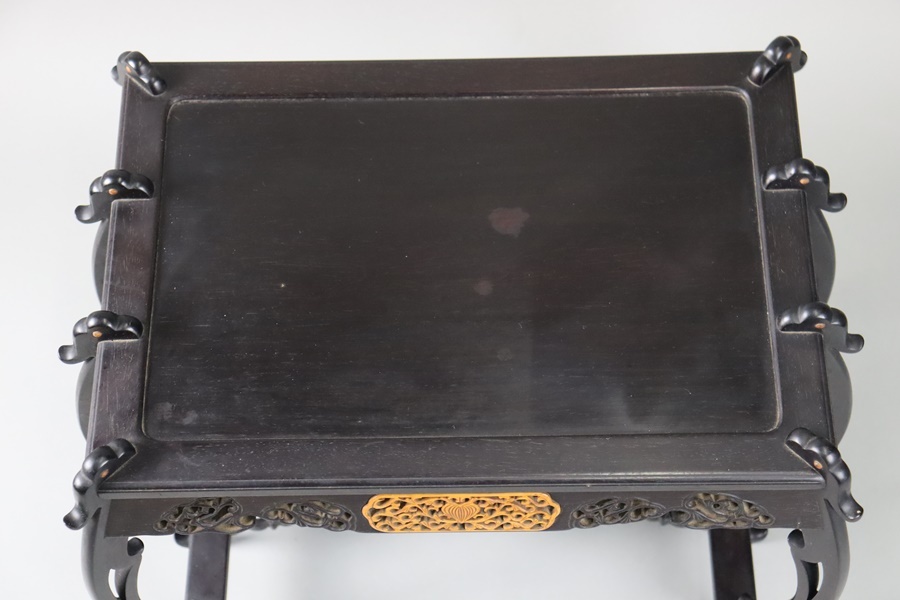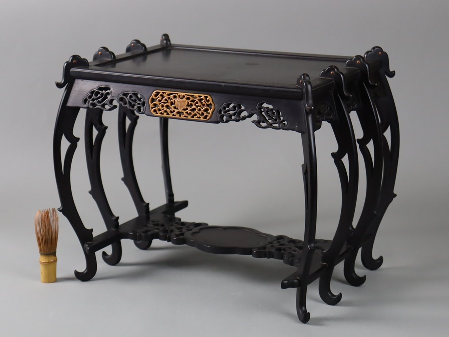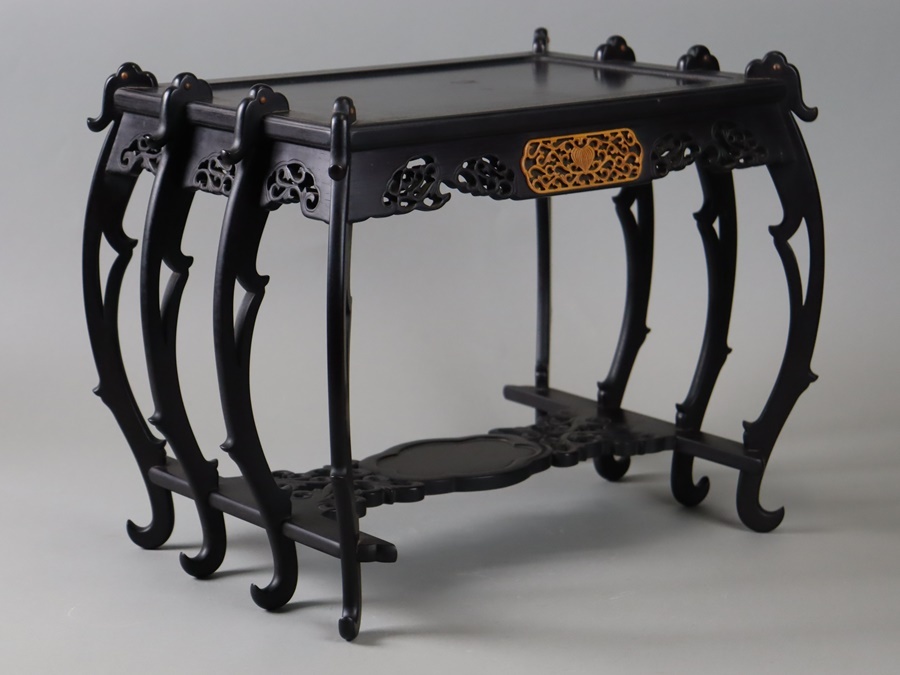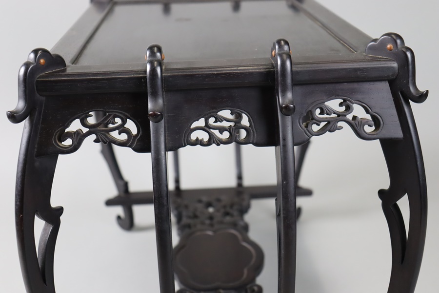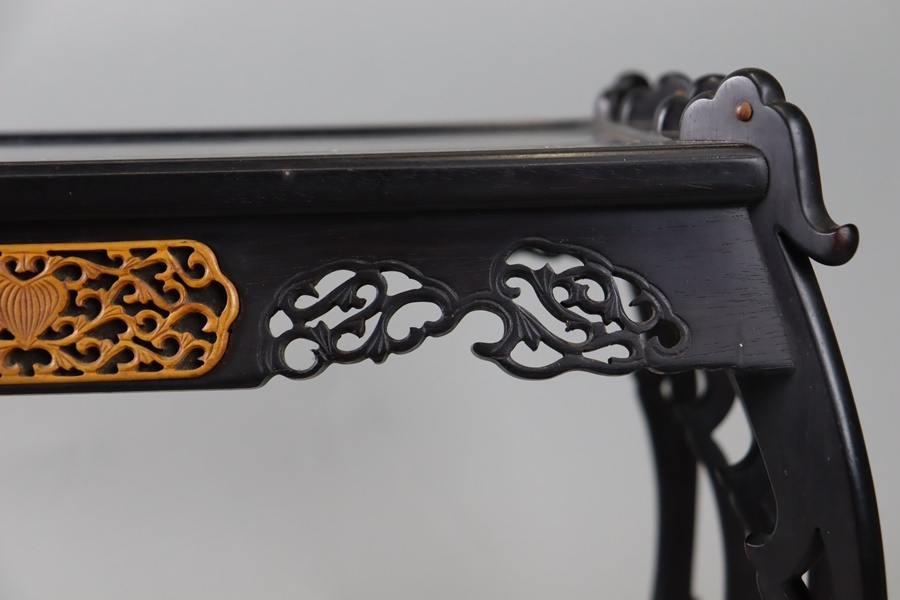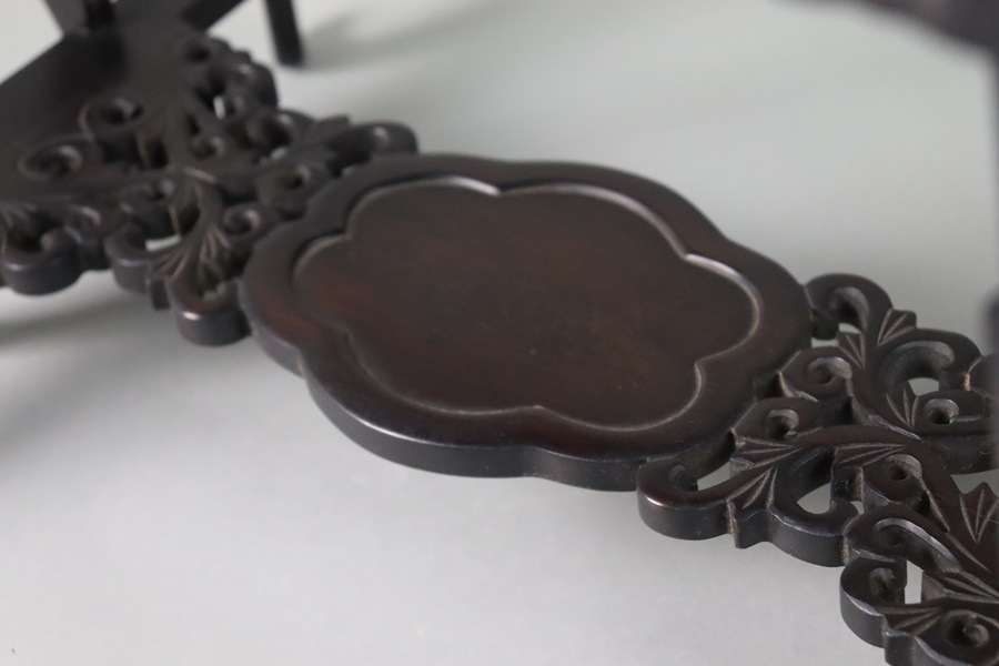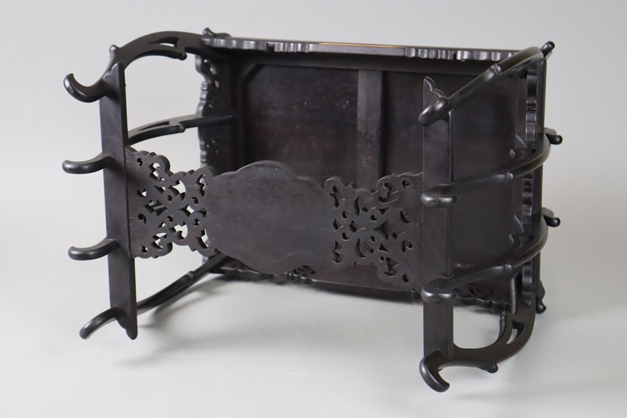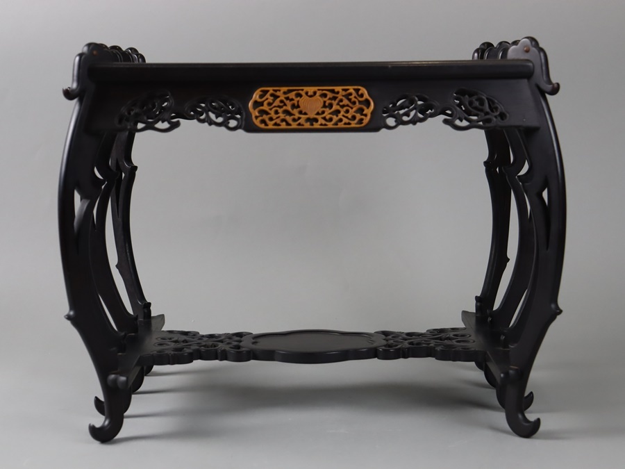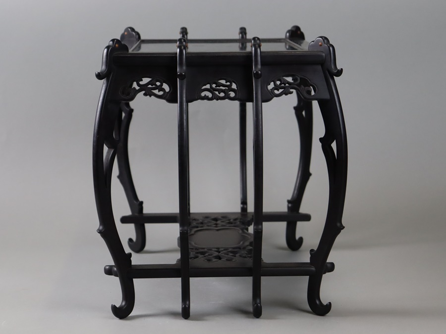 【中国美術 唐木 透彫 八足 花台 幅46cm】