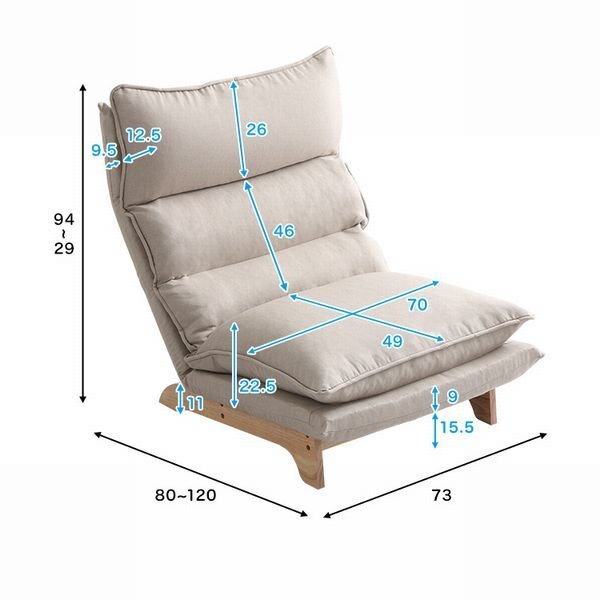 脚付きリクライニングローソファ 1人掛け! 全身を包み込むハイバックの背もたれと、幅広で2重クッションの座面で贅沢にくつろぐことが出来ます。 背もたれだけでなく、頭部分にもリクライニング機能が付いているので、お好きな角度で使用いただけます。 オットマンは幅広の座面なので、足置きとしてはもちろん、サイドテーブルとしてもご利用いただけます。 |