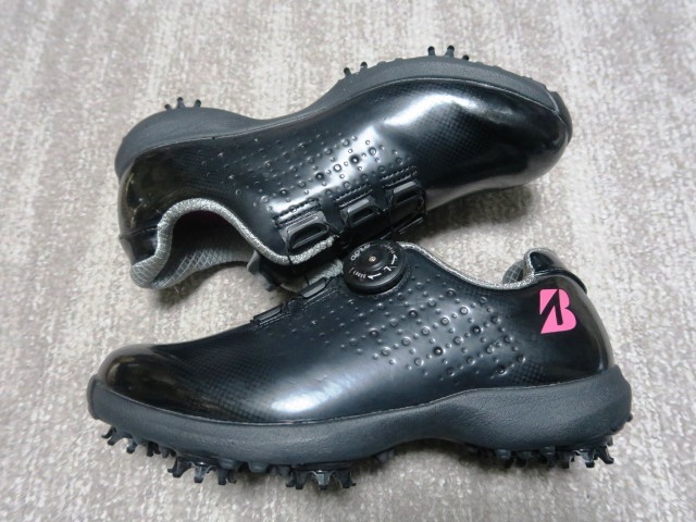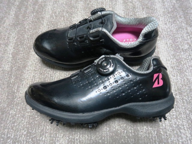 美品 超軽量 BRIDGESTONE GOLF ブリヂストンゴルフ SHG630 BSGスパイク CL ゴルフシューズ 黒 23.0cm 女性用 スパイクシューズ