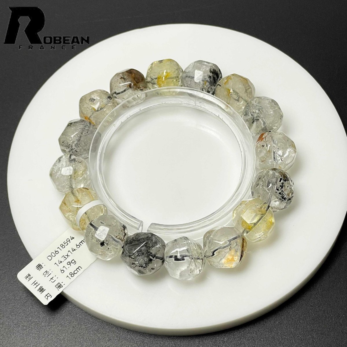 逸品 EU製 定価22万円★ROBEAN・ハーキマーダイヤモンド★パワーストーン ブレスレット 天然石 原石 綺麗 お守り 14.3*14.6mm D0618594