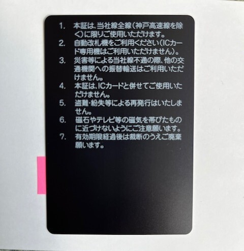 神戸電鉄 株主優待乗車証です。