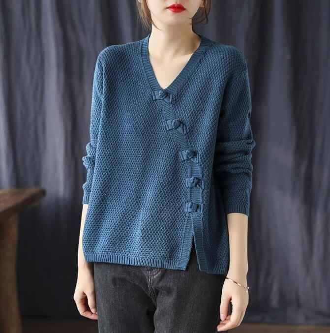 大きいサイズあり レディース カジュアルニット 韓国風 ニットトップス M ブルー