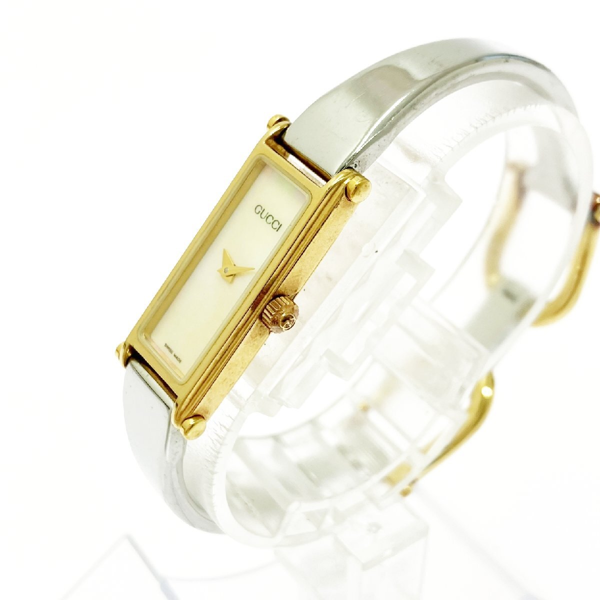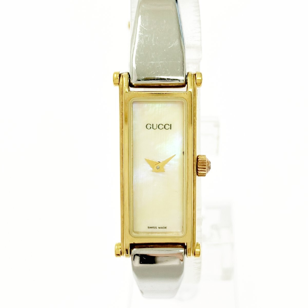 【1円スタート】GUCCI グッチ 1500 バングルウォッチ GP×SS シェル文字盤 クオーツ レディース腕時計 519404