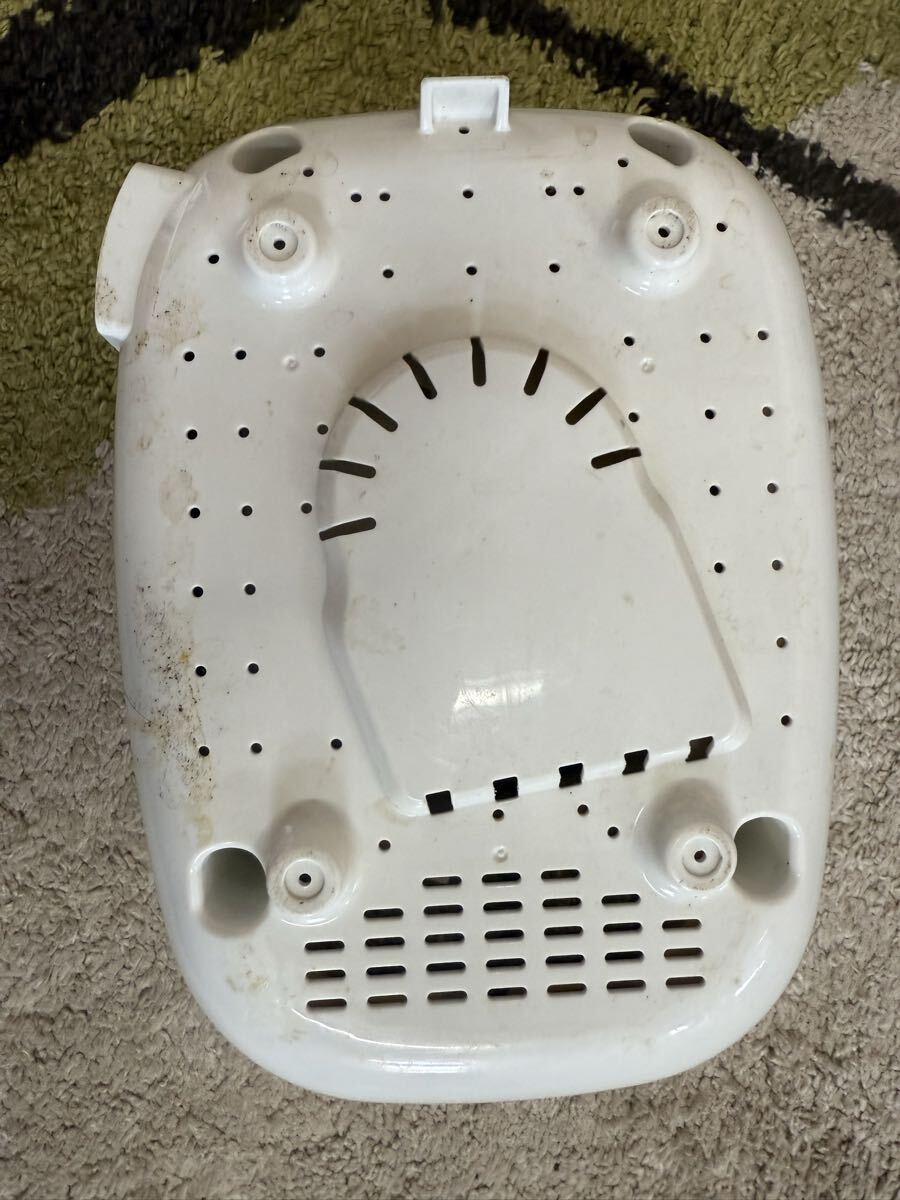 外装全体にキズ・ヨゴレ・変色が目立ちます。内ぶたや底面にも汚れがあります。内釜付きですが使用感があります。電源コードは欠品しています。長期保管品・現状渡しとなりますので、画像をよくご確認の上ご入札ください。