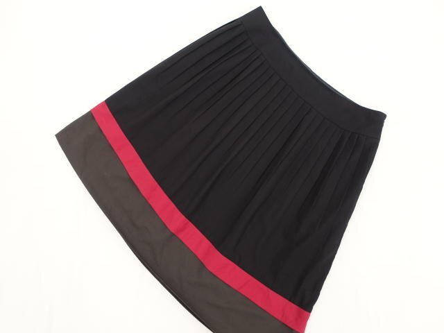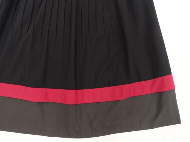 ひざ丈 プリーツスカート 44 ブラック&ピンク&グレー
