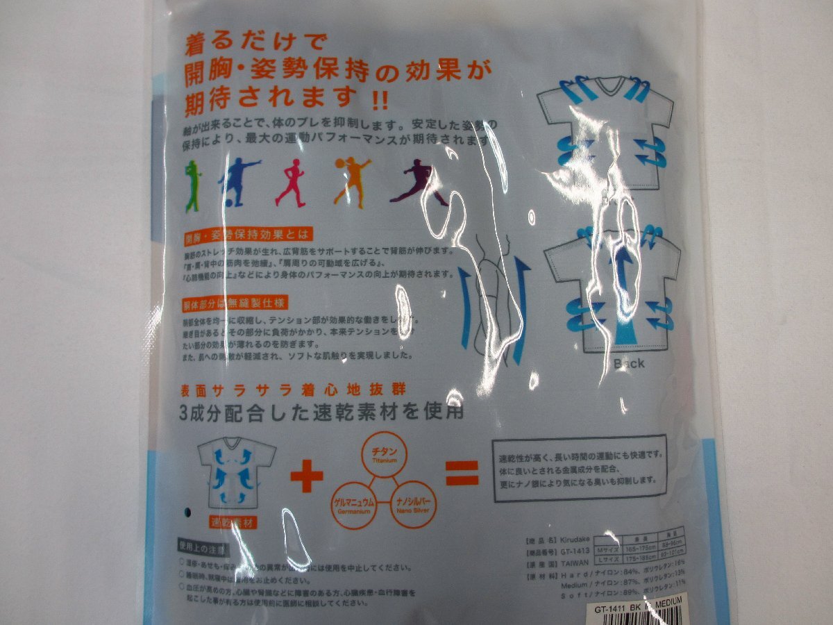 *特長:開胸・姿勢保持効果、胴体部分は無縫製仕様、速乾素材。